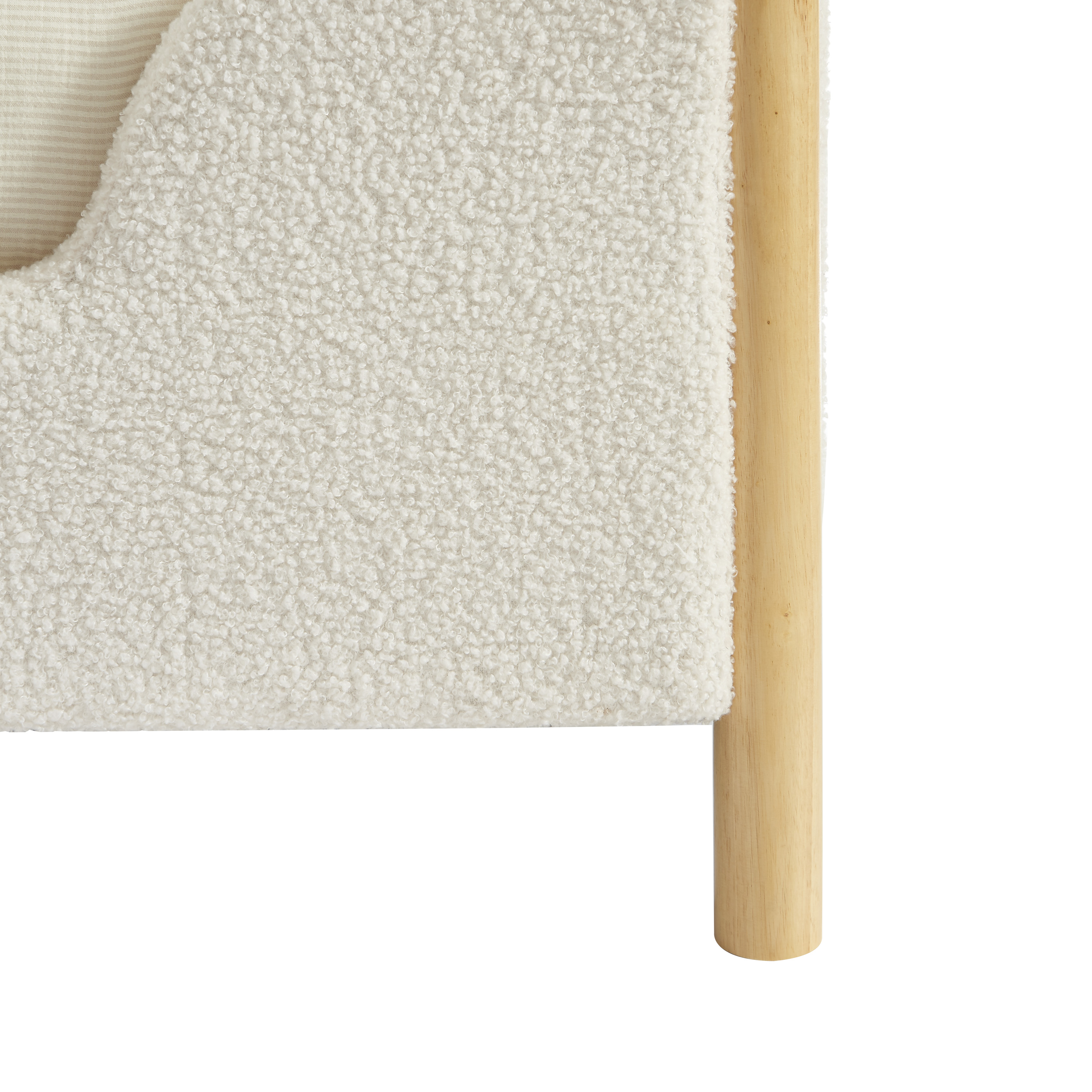 Le lit enfant ARI allie confort, douceur et style. Son revêtement en tissu bouclette beige et ses pieds en bois sont parfaits pour créer un univers apaisant dans la chambre de votre enfant.