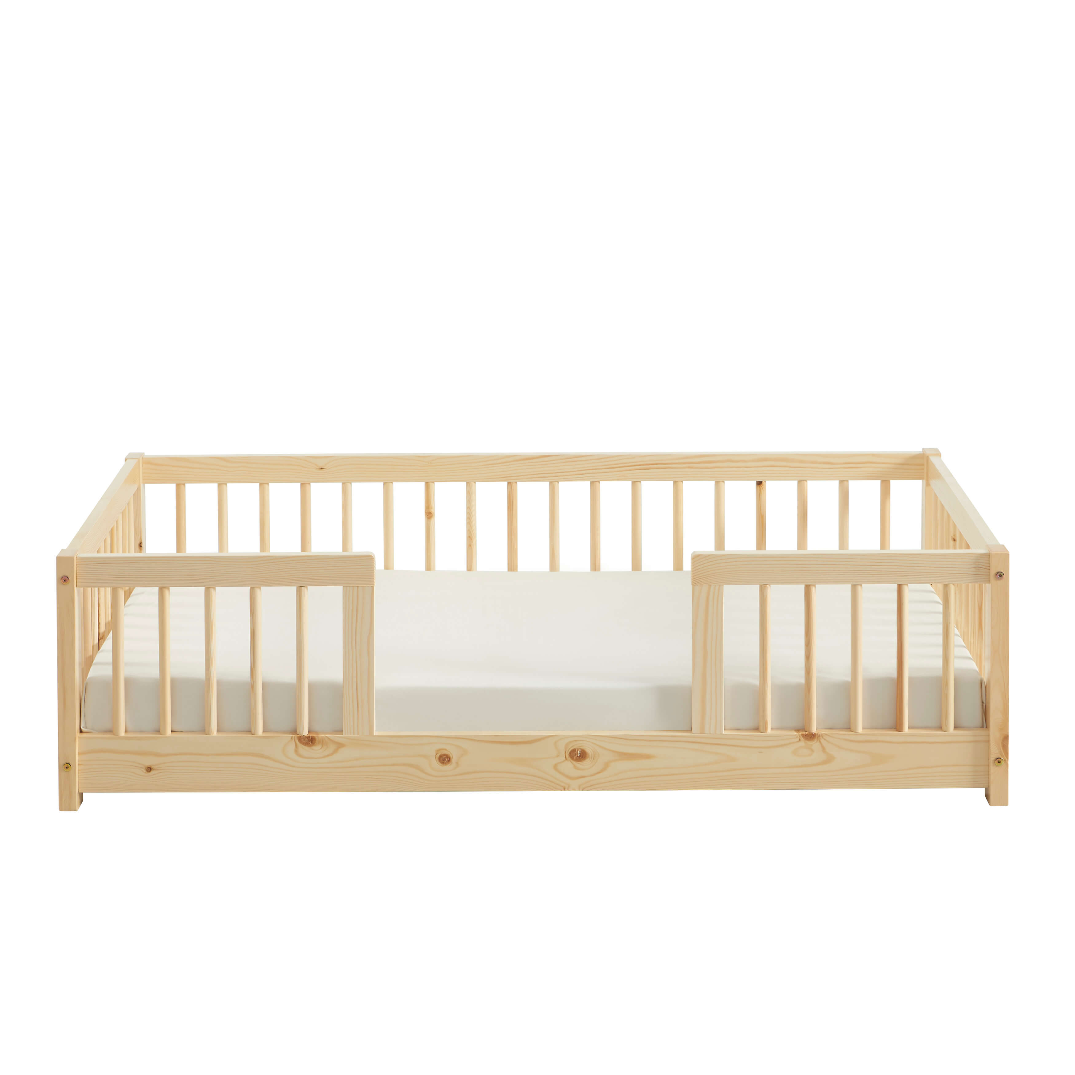 Le lit enfant EDEN est pensé pour allier confort et sécurité. Ses barrières intégrées protègent efficacement votre enfant tout en laissant une ouverture pratique pour qu'il puisse monter et descendre facilement de son lit.