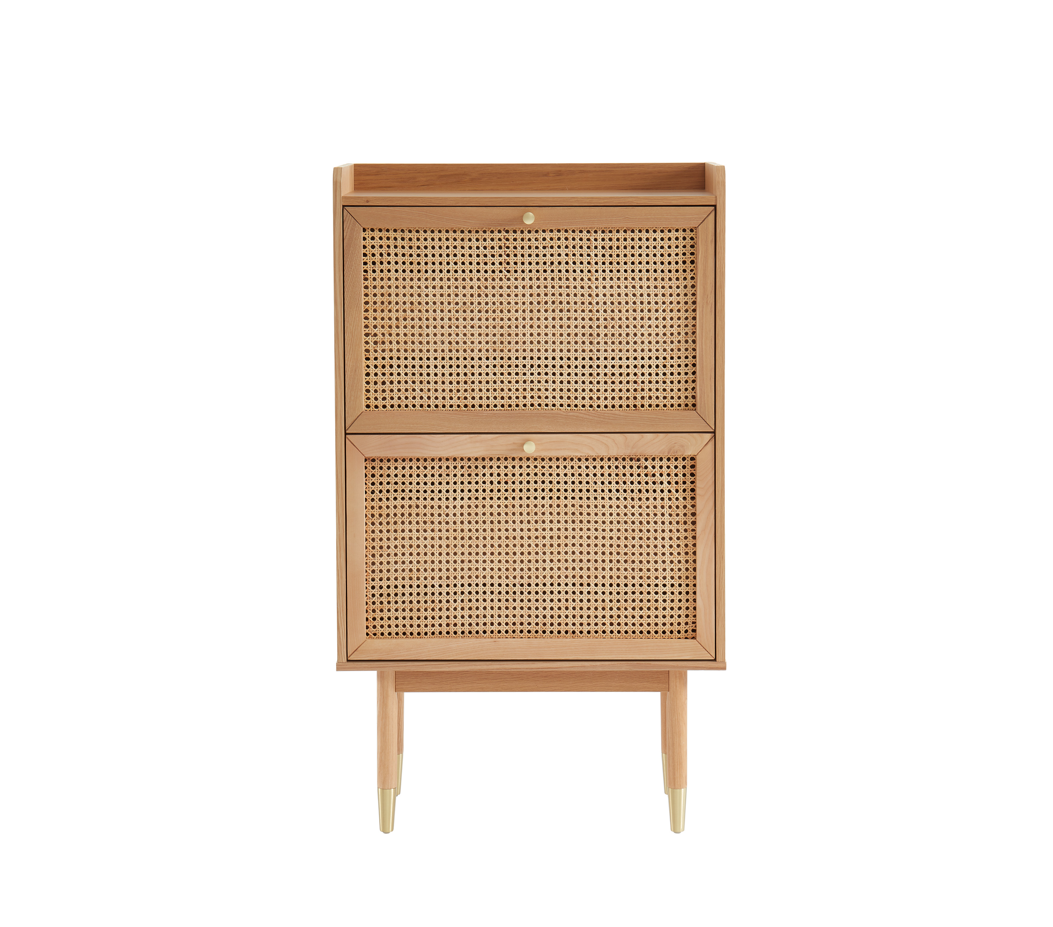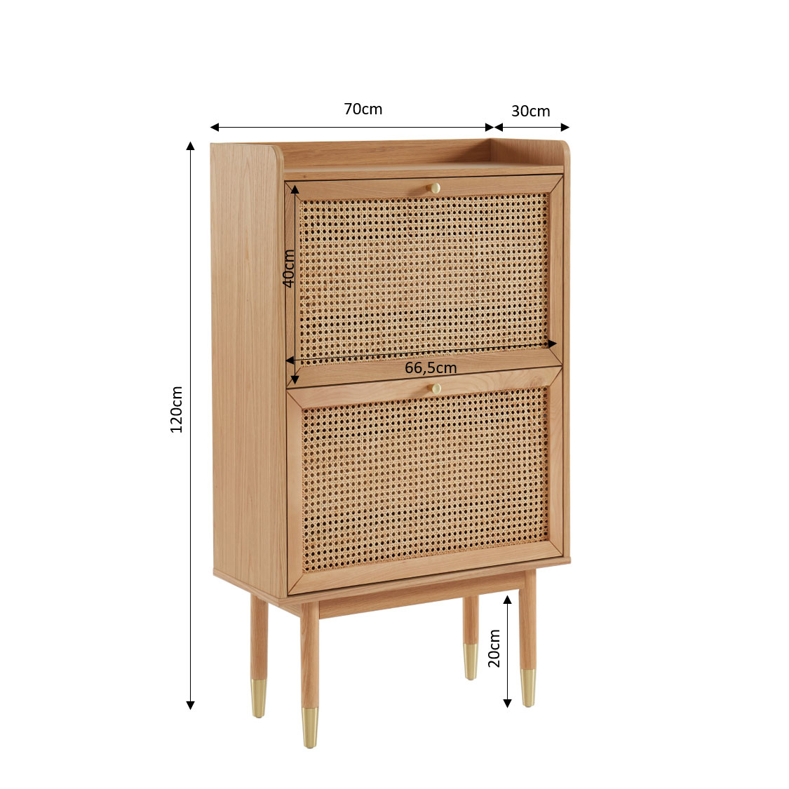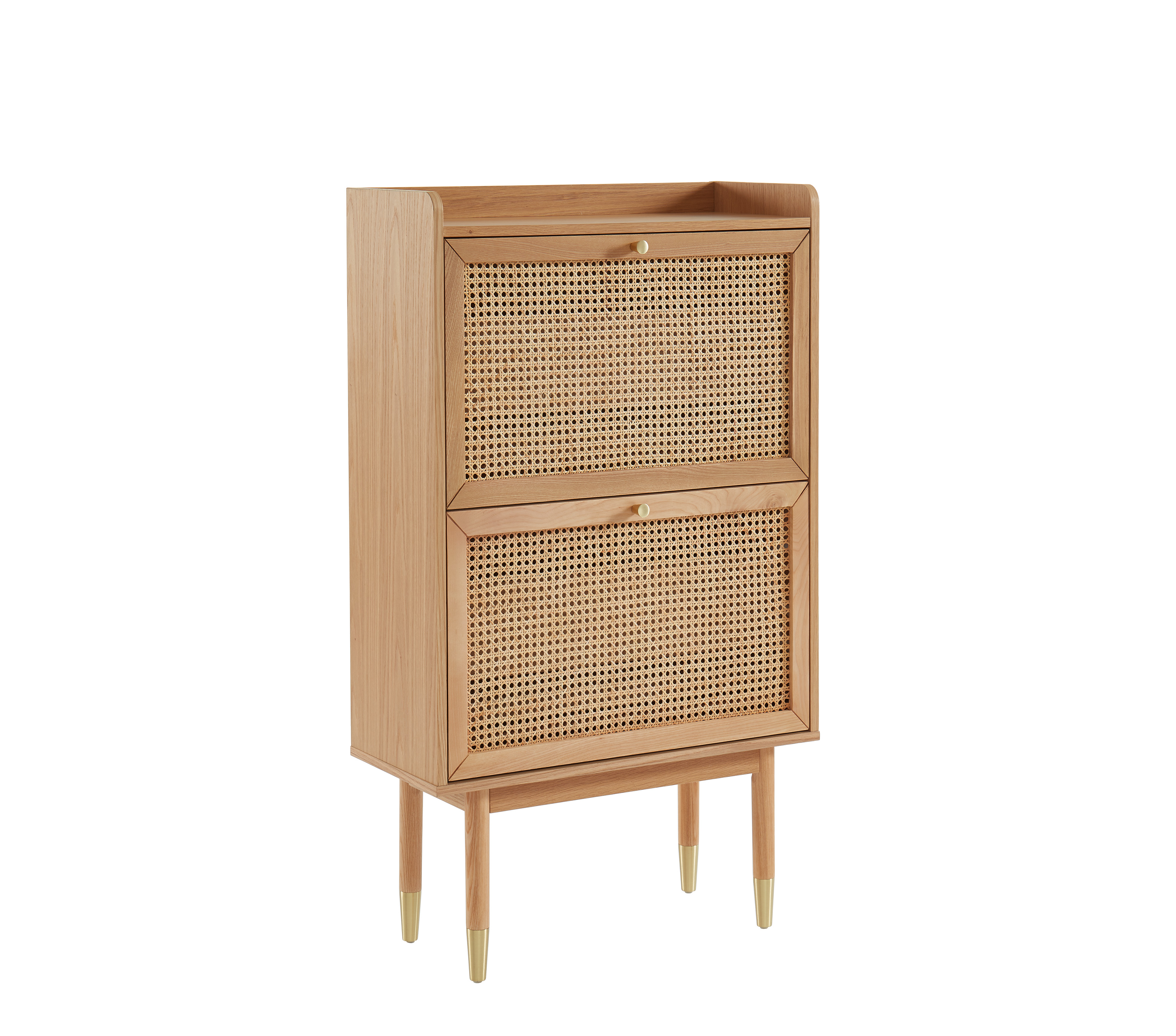 Vous cherchez un meuble à chaussures pour votre entrée ? Optez pour la gamme LÉON et son magnifique cannage en rotin ! Ce meuble à chaussures, pratique et au style rétro, vous permettra d'optimiser vos espaces en y apportant de nouveaux espaces de rangements.