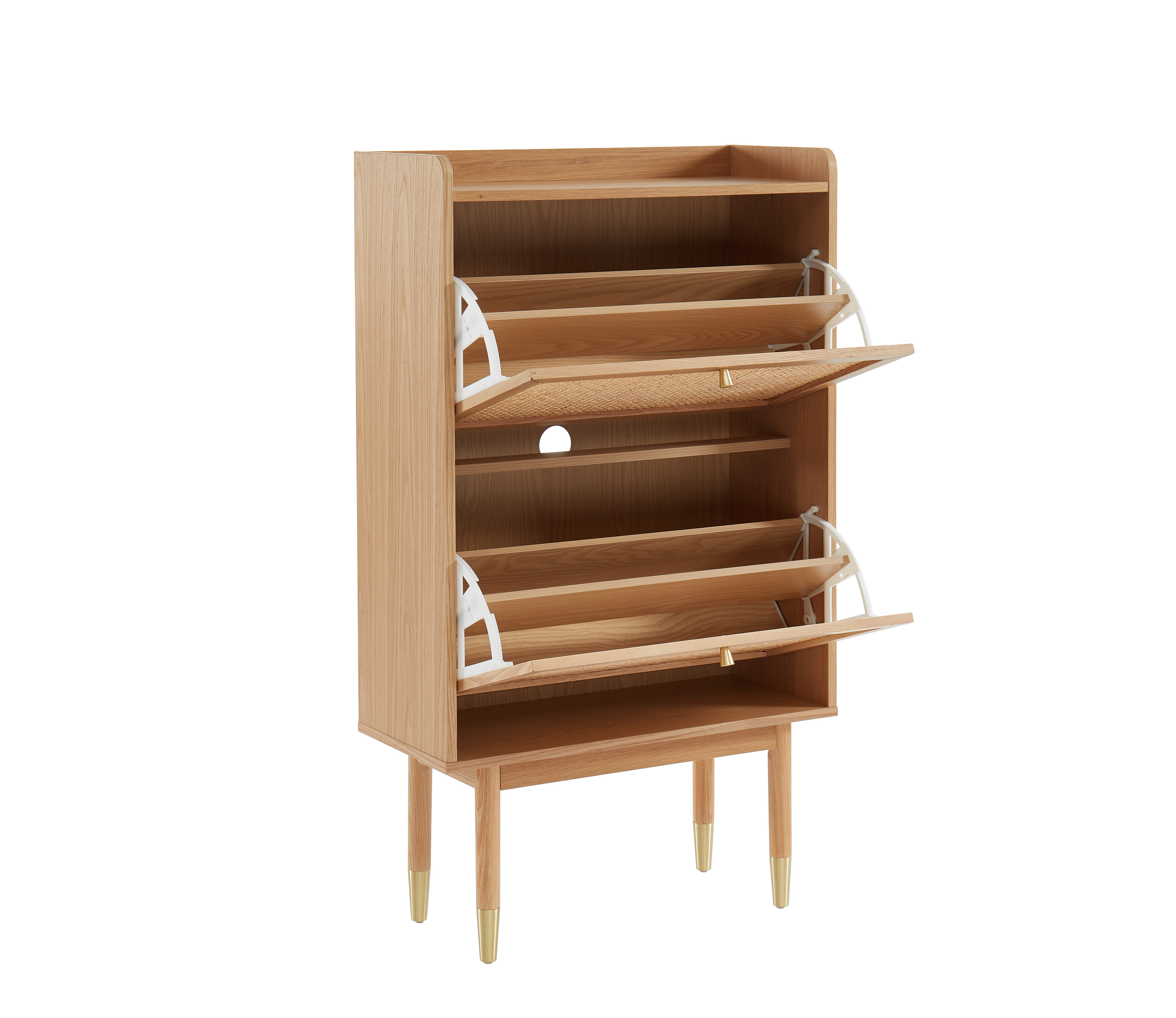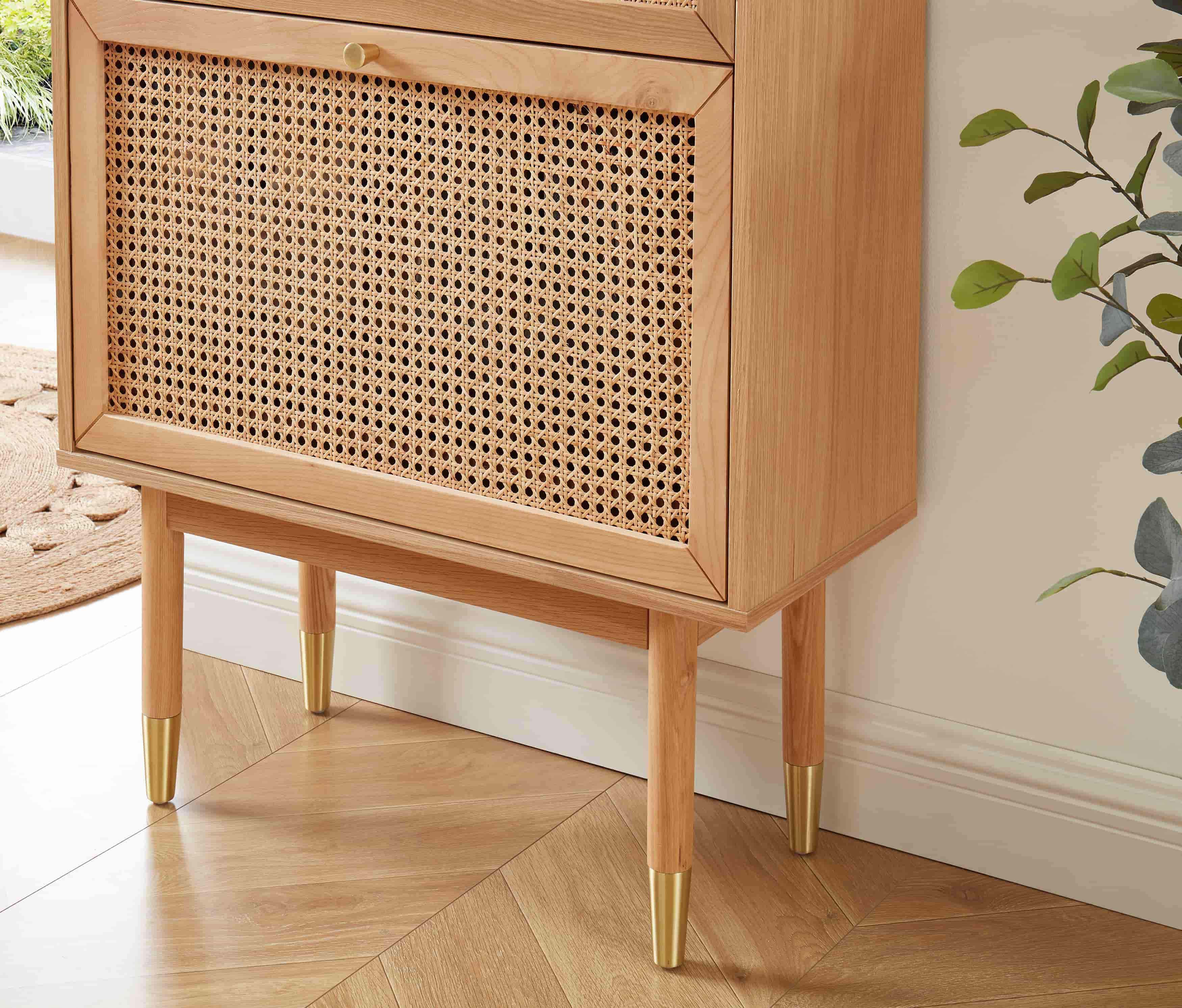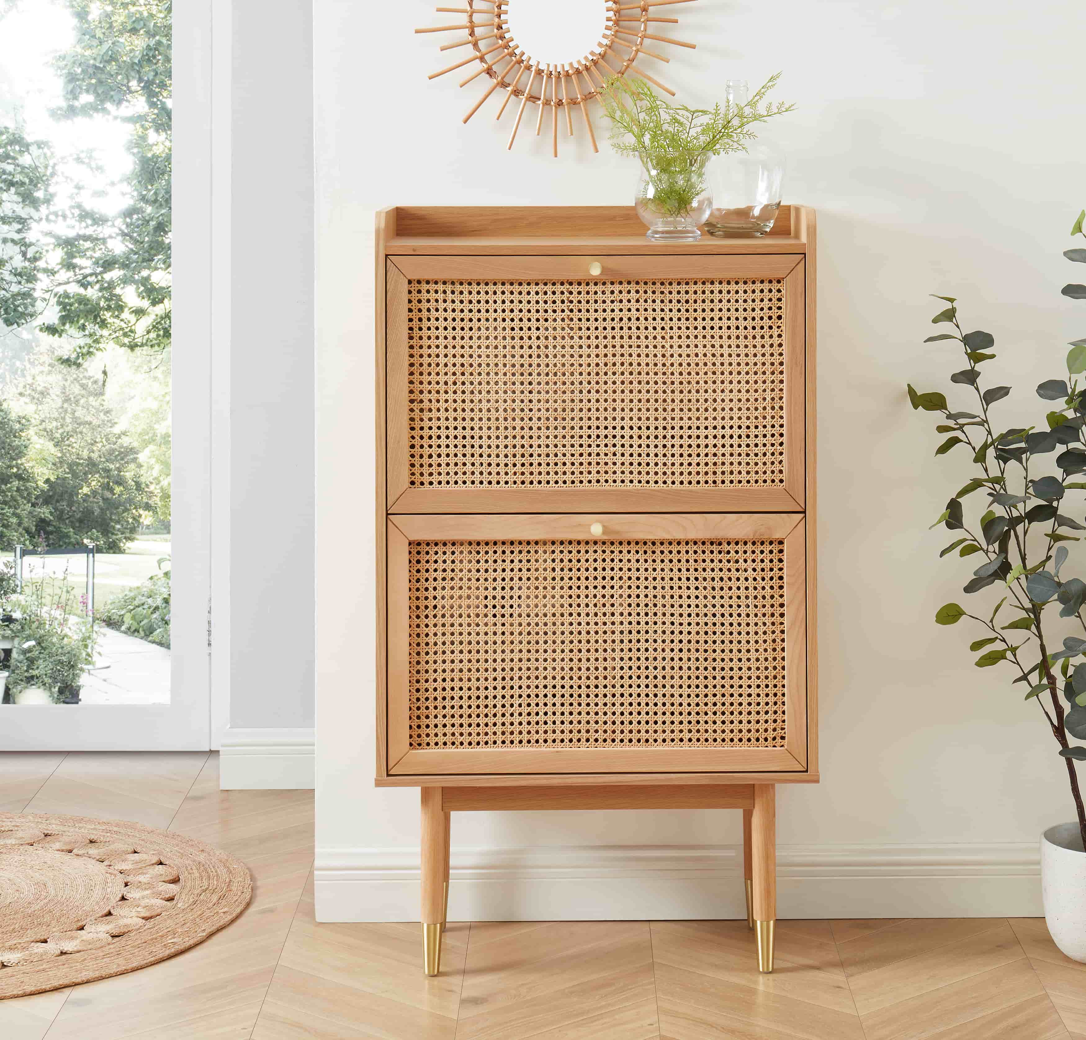 Vous cherchez un meuble à chaussures pour votre entrée ? Optez pour la gamme LÉON et son magnifique cannage en rotin ! Ce meuble à chaussures, pratique et au style rétro, vous permettra d'optimiser vos espaces en y apportant de nouveaux espaces de rangements.