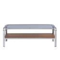 Meuble TV MAGGY verre trempé placage noyer structure en chrome 120cm