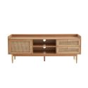 Le cannage revient à la mode cette année ! Alors pourquoi ne pas opter pour notre gamme LÉON et son style rétro ? Avec ce meuble TV en cannage, vous apporterez une touche de modernité à votre intérieur, tout en y ajoutant de nouveaux espaces de rangements. En effet, ce meuble TV en cannage est doté d'1 porte, de 2 tiroirs et de 2 niches ! De quoi y ranger vos livres, vos télécommandes ou encore vos chargeurs. Pour finir, le meuble TV LÉON possède également des emplacements dédiés aux passages de câbles.