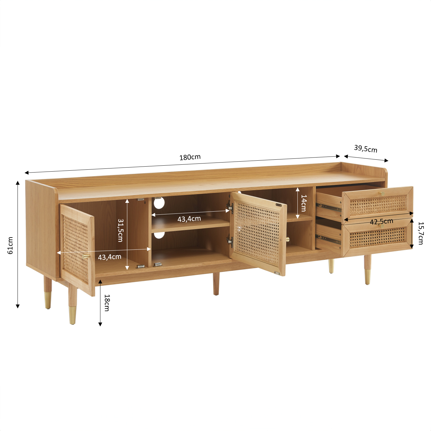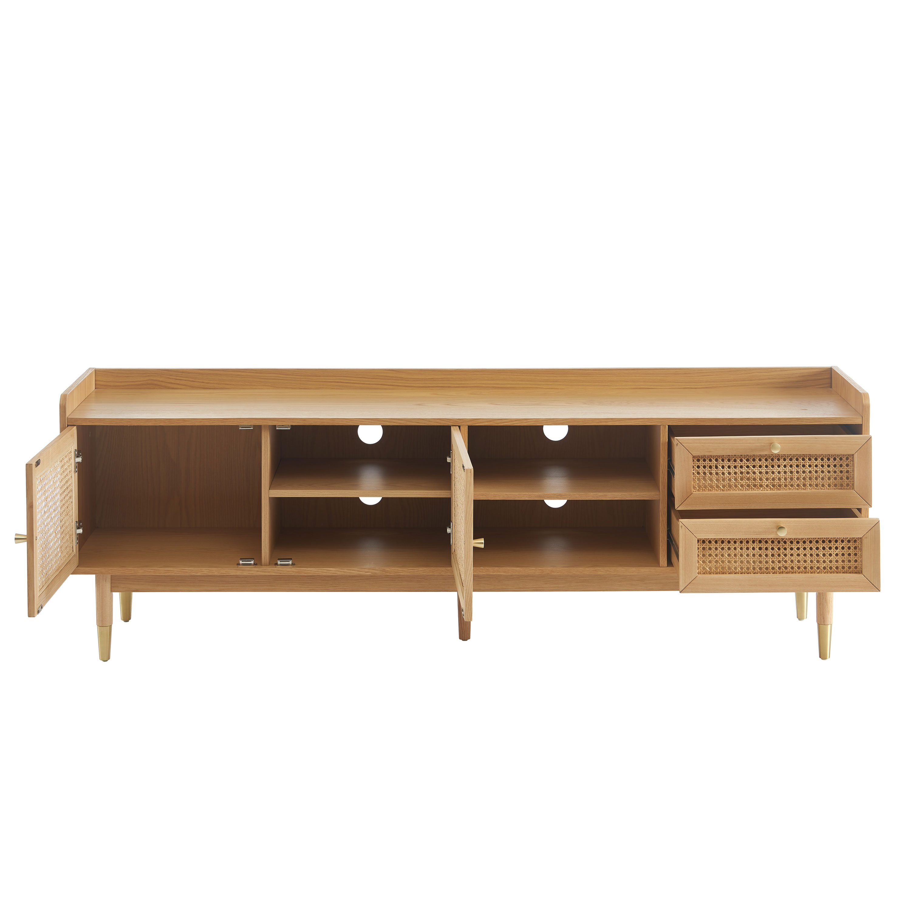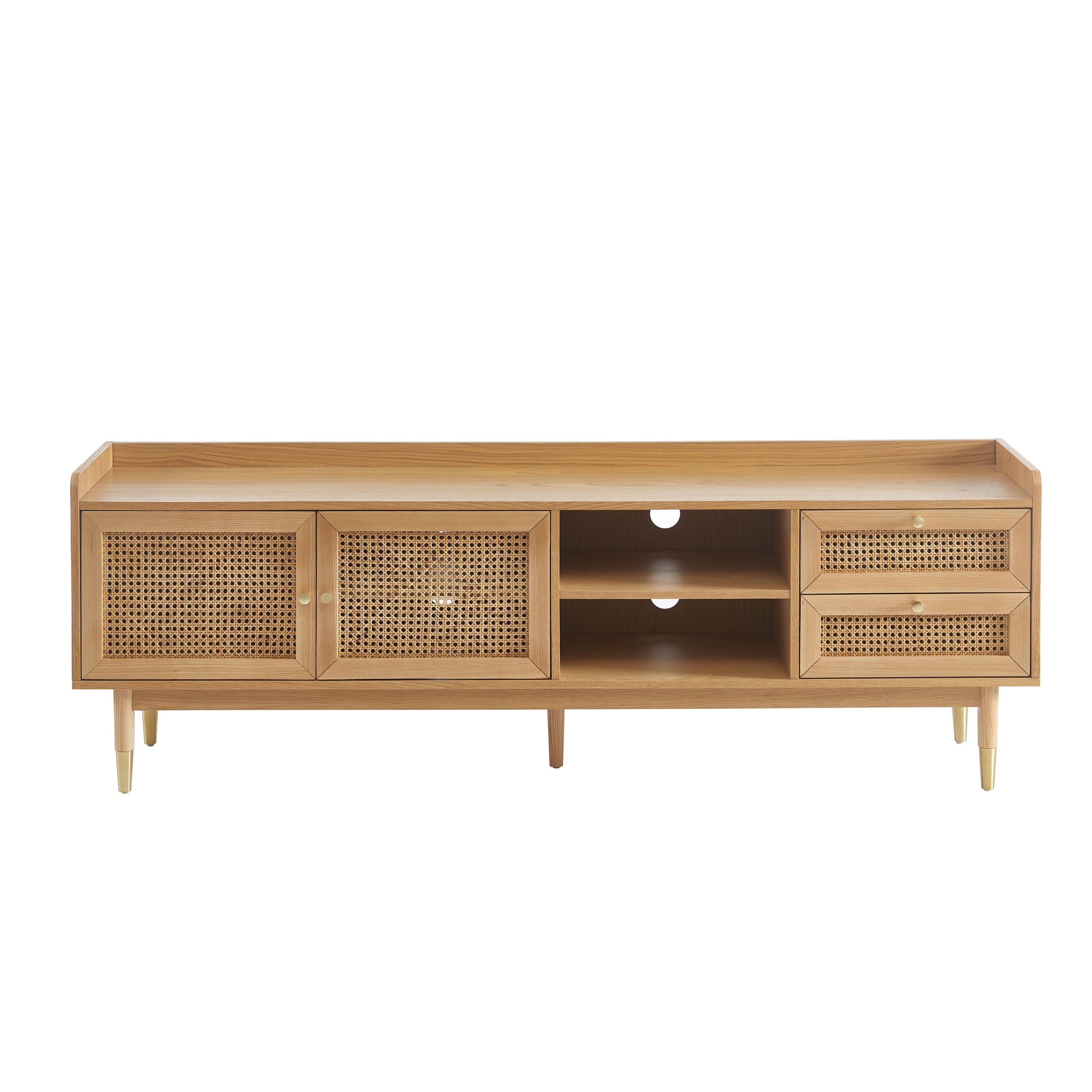 Meuble TV LEON placage chêne et cannage rotin 180cm