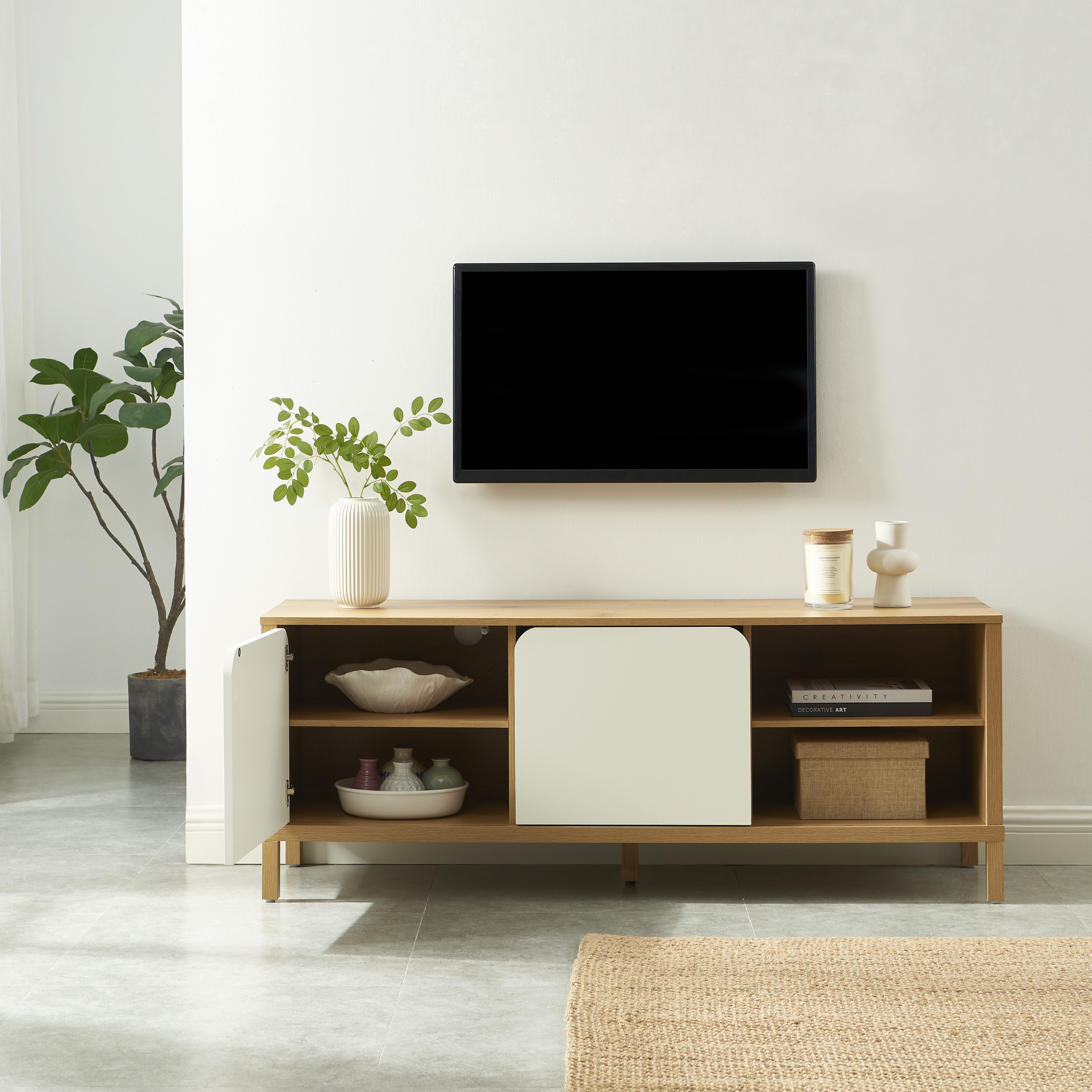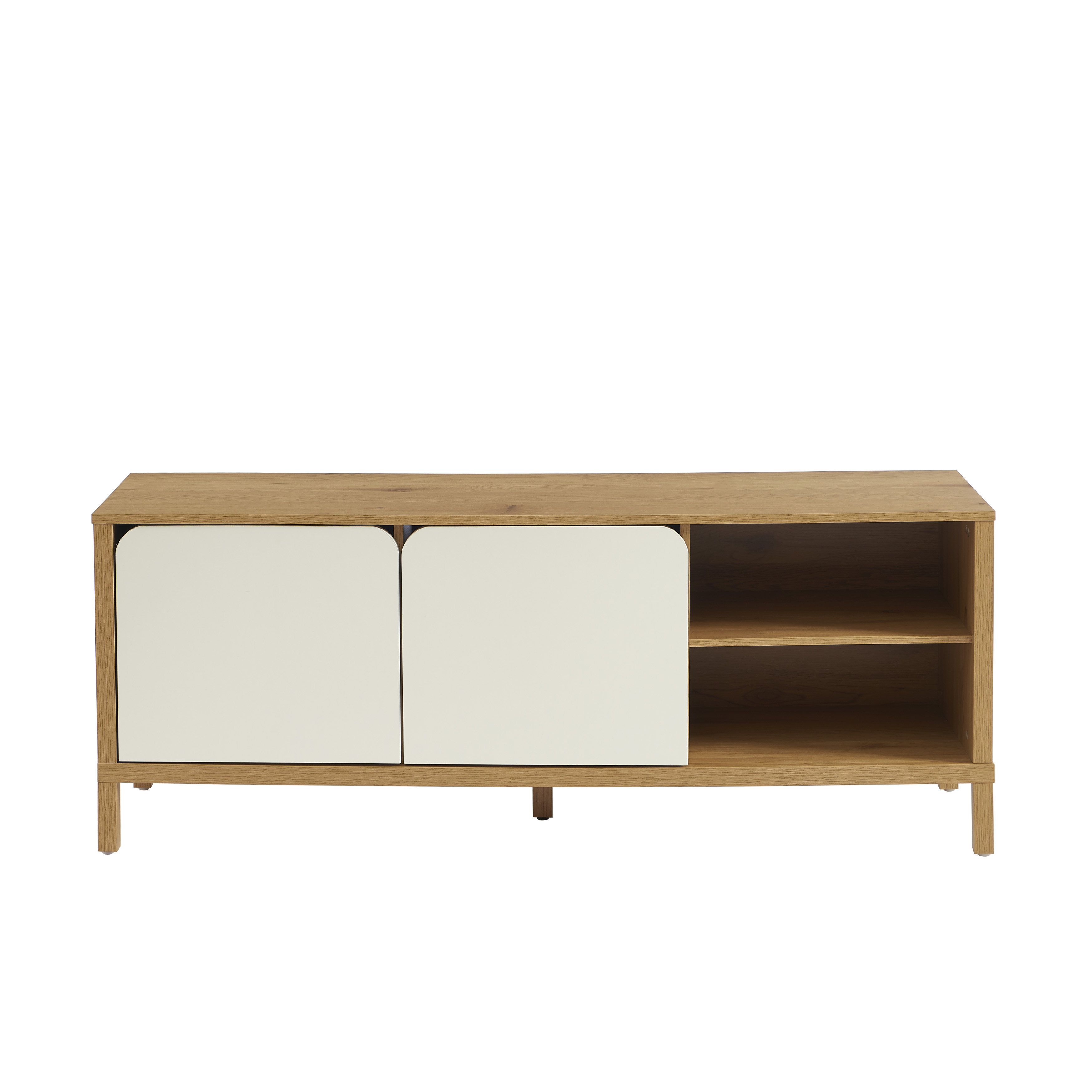 Meuble TV KILDA effet chêne et portes blanches 140cm