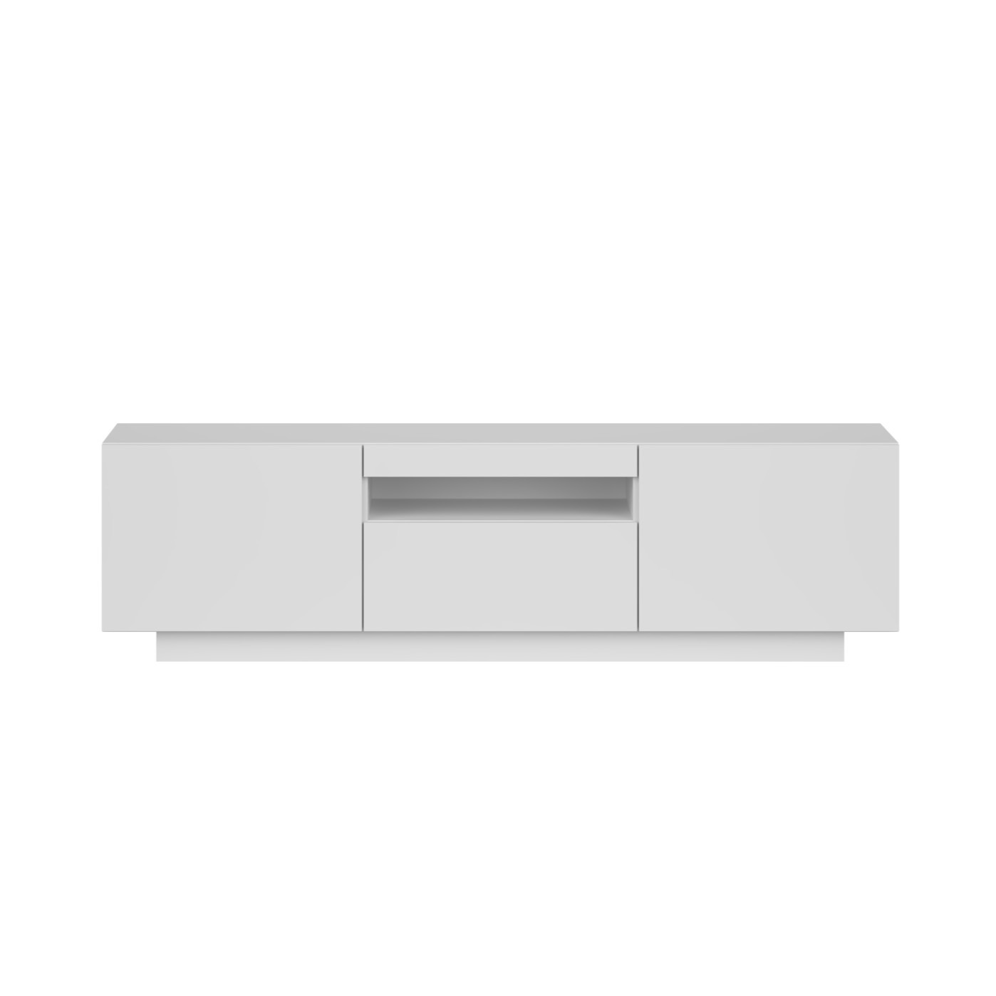 Un meuble TV au style épuré, avec finition blanc mat, parfait pour organiser votre salon avec modernité.