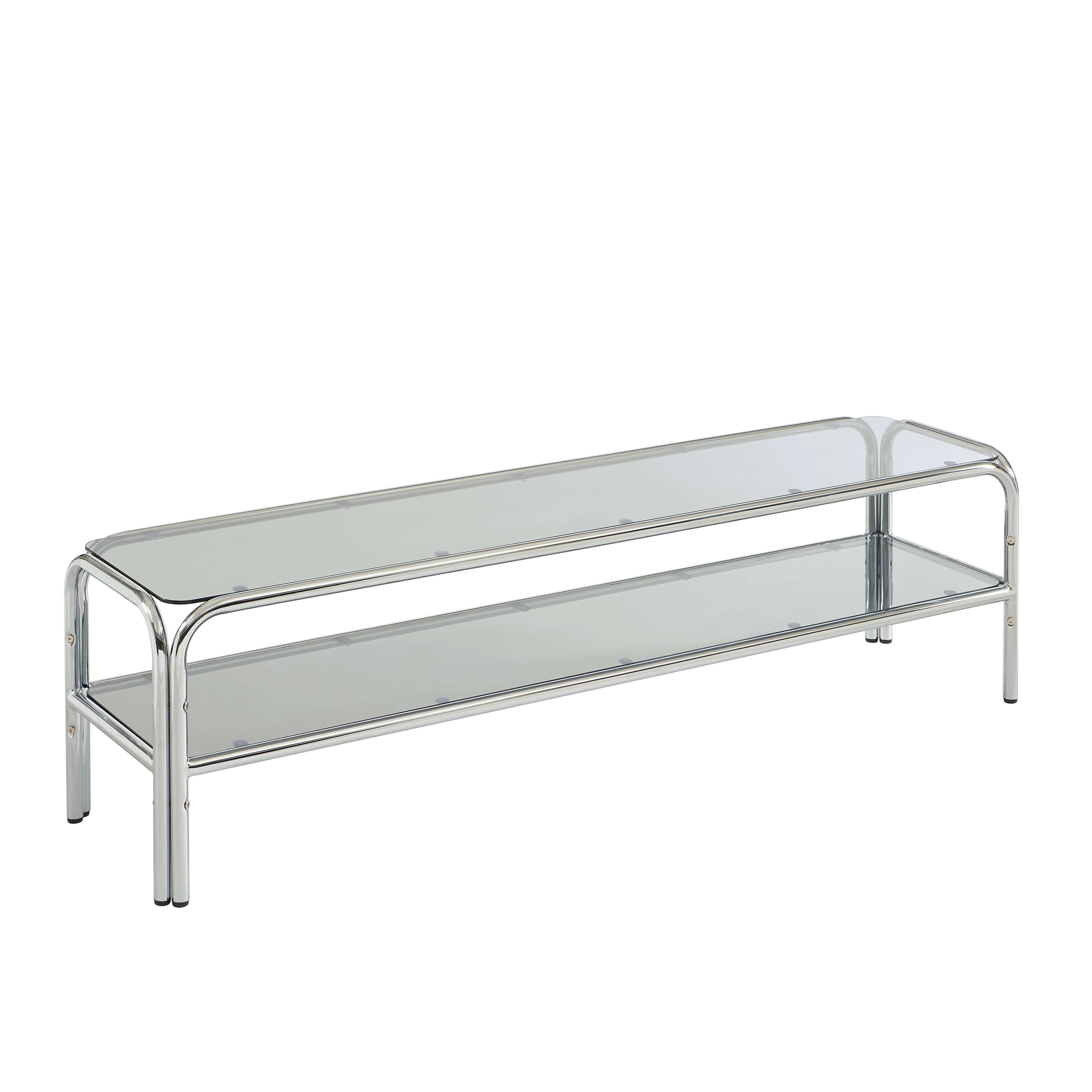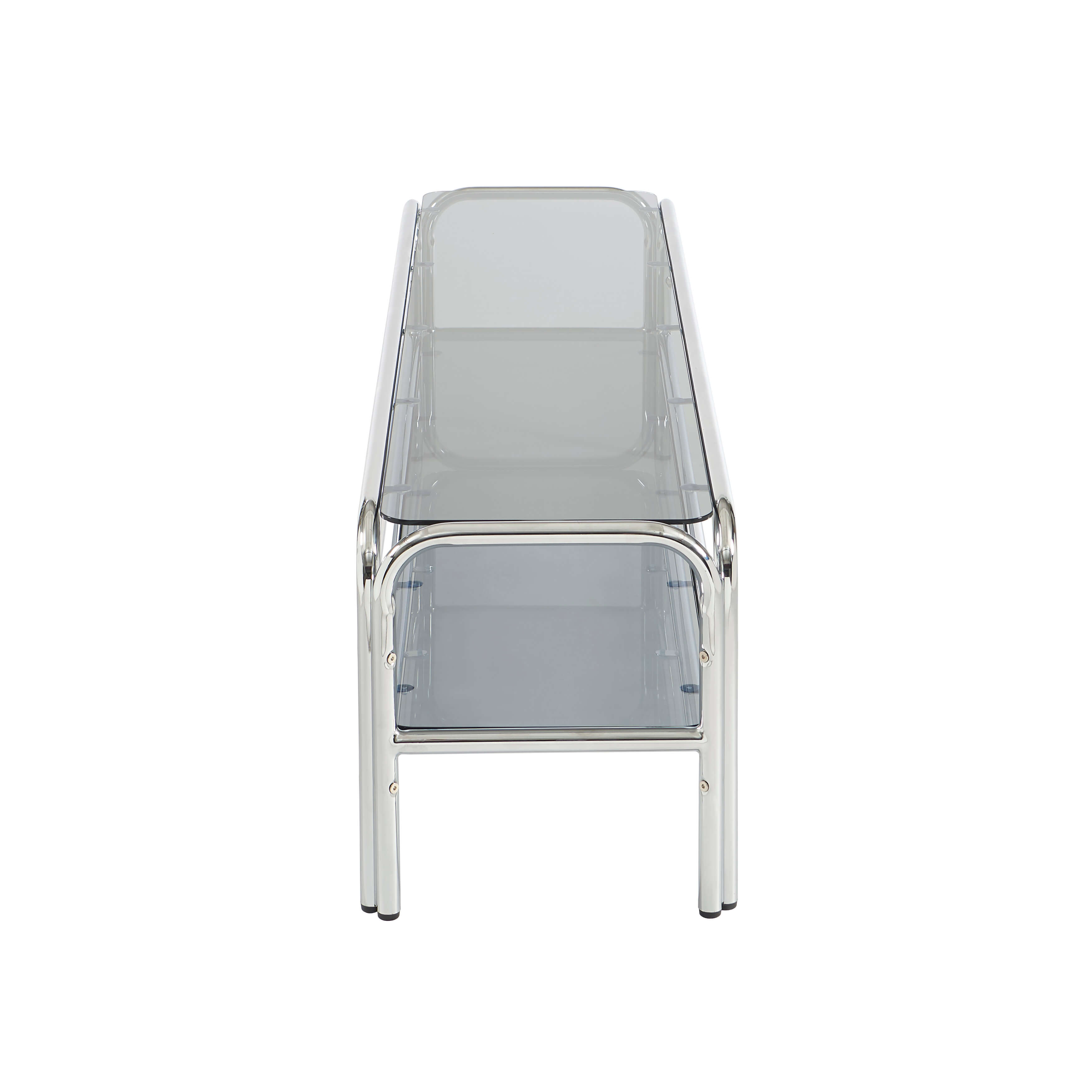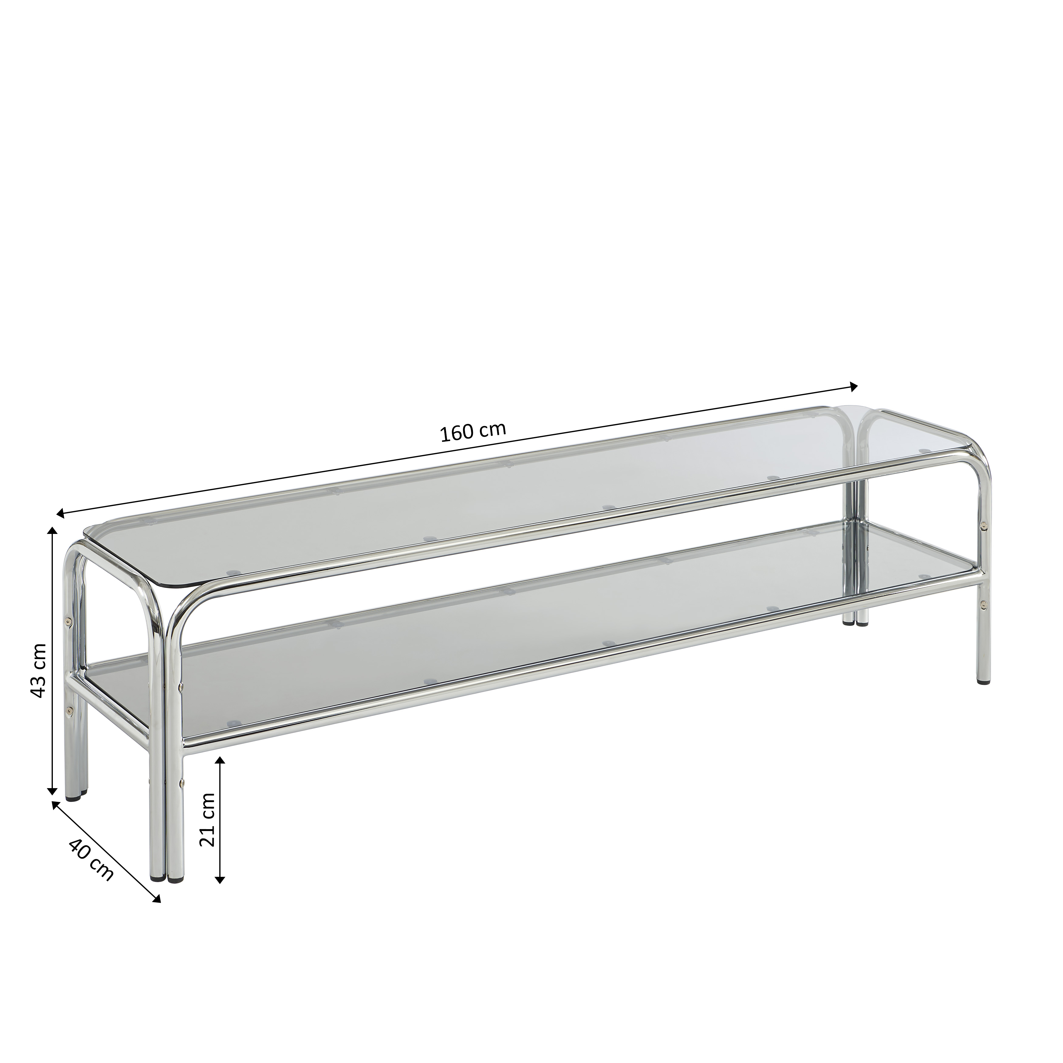 Meuble TV MAGGY verre trempé noir et structure en chrome 160cm