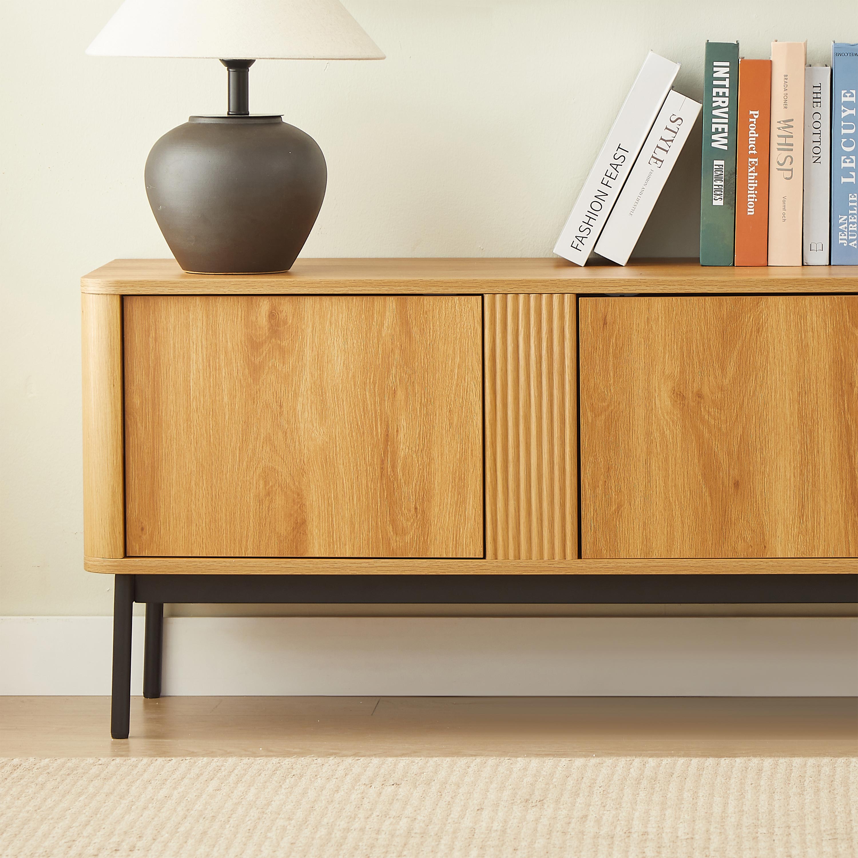 Avec ses trois portes, ce meuble TV offre un bel espace de rangement pour accueillir appareils multimédia, accessoires et objets du quotidien. Ses rangements fermés permettent ainsi de garder un salon à la fois ordonné et élégant.