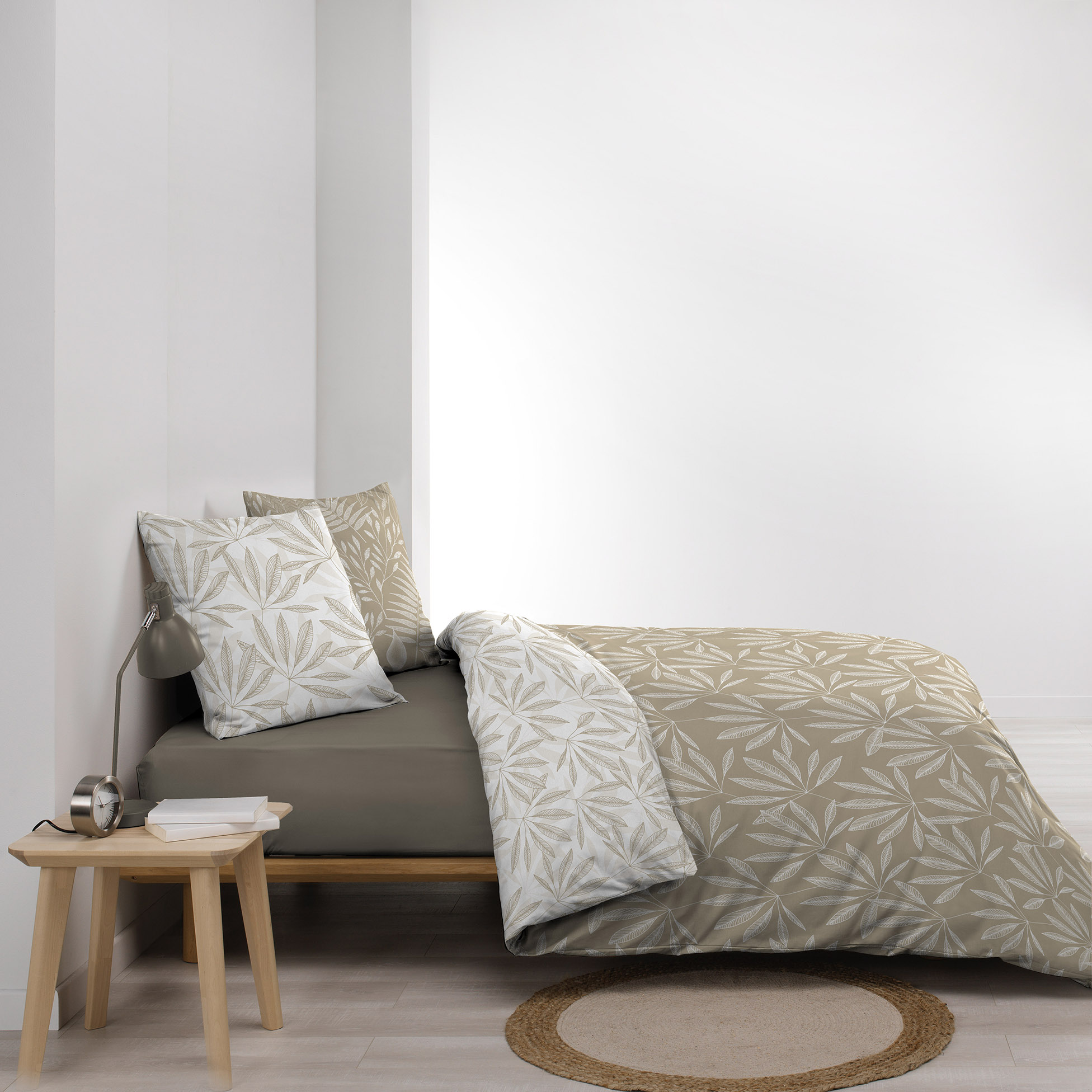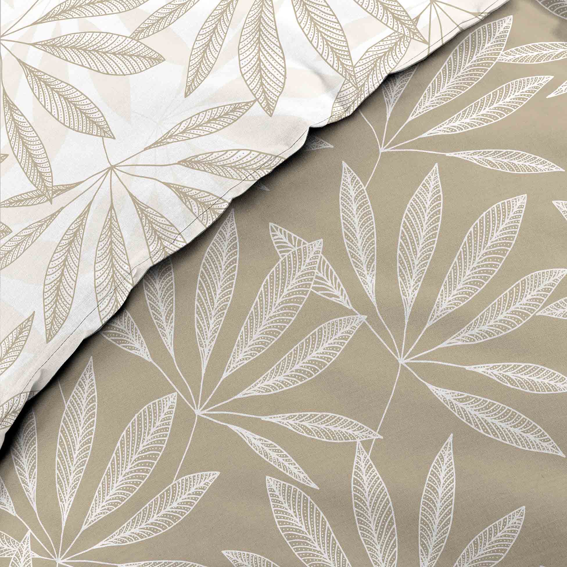 La parure de couette JAKU 240x220 cm (3 pièces) transforme votre chambre en un espace accueillant. Composée d’une housse de couette et de deux taies d’oreiller, elle se distingue par son motif feuilles de jungle, apportant une touche naturelle à votre literie.