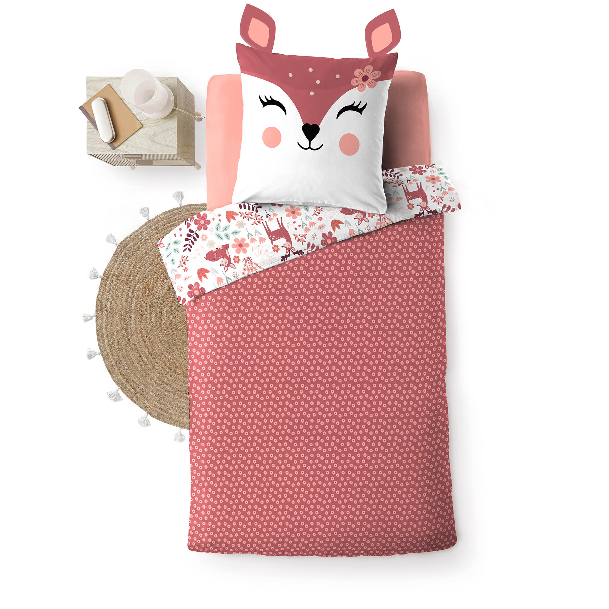 La parure de couette enfant ROSI 140x200 cm (3 pièces) apporte confort et douceur au sommeil de votre enfant. Composée d’une housse de couette et de deux taies d’oreiller, elle se distingue par son adorable motif biche, parfait pour créer une ambiance chaleureuse dans la chambre de votre enfant.