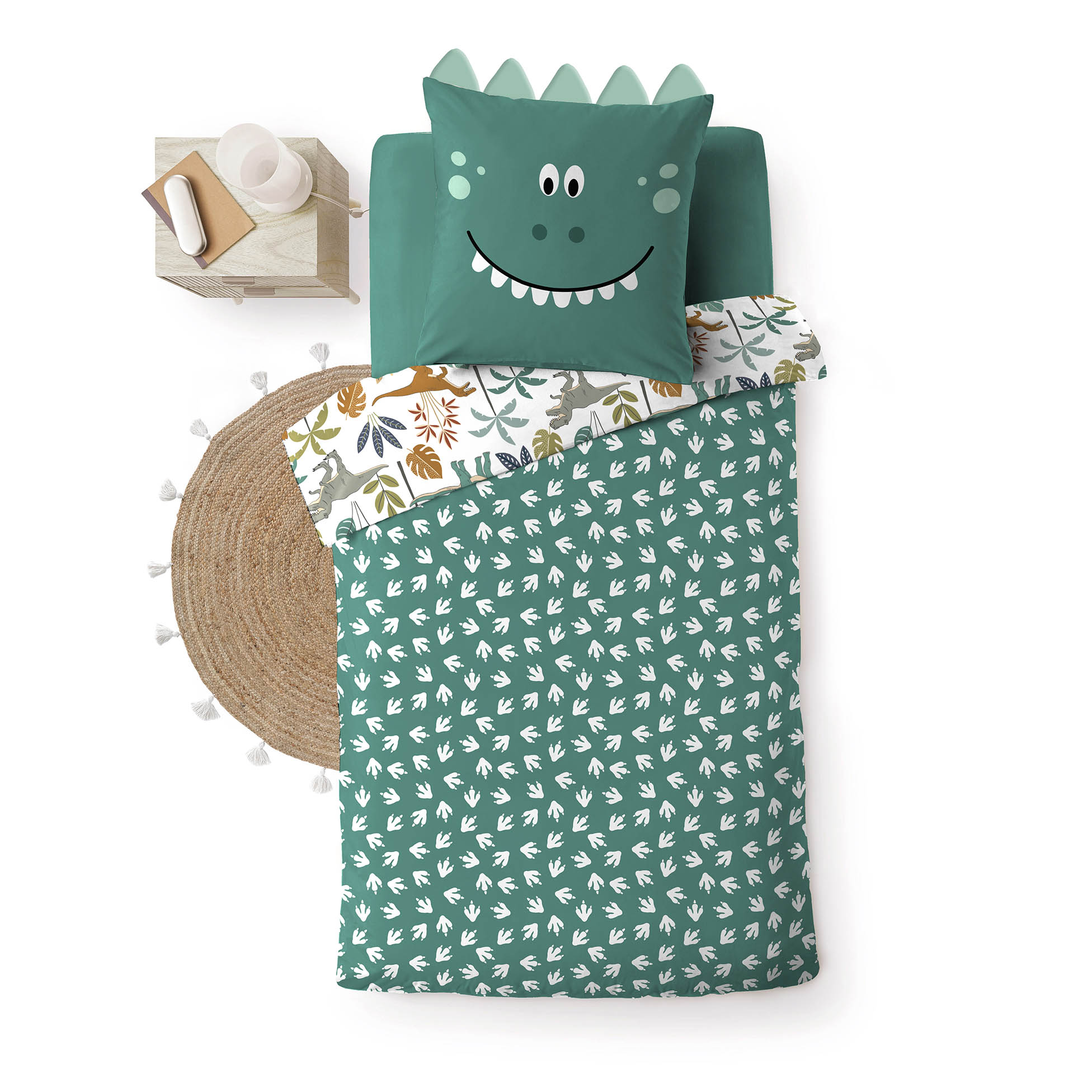 Composée d’une housse de couette et de deux taies d’oreiller, la parure de couette enfant PREO 140x200 cm (3 pièces) se distingue par son motif dinosaure, idéal pour créer un espace de sommeil amusant.