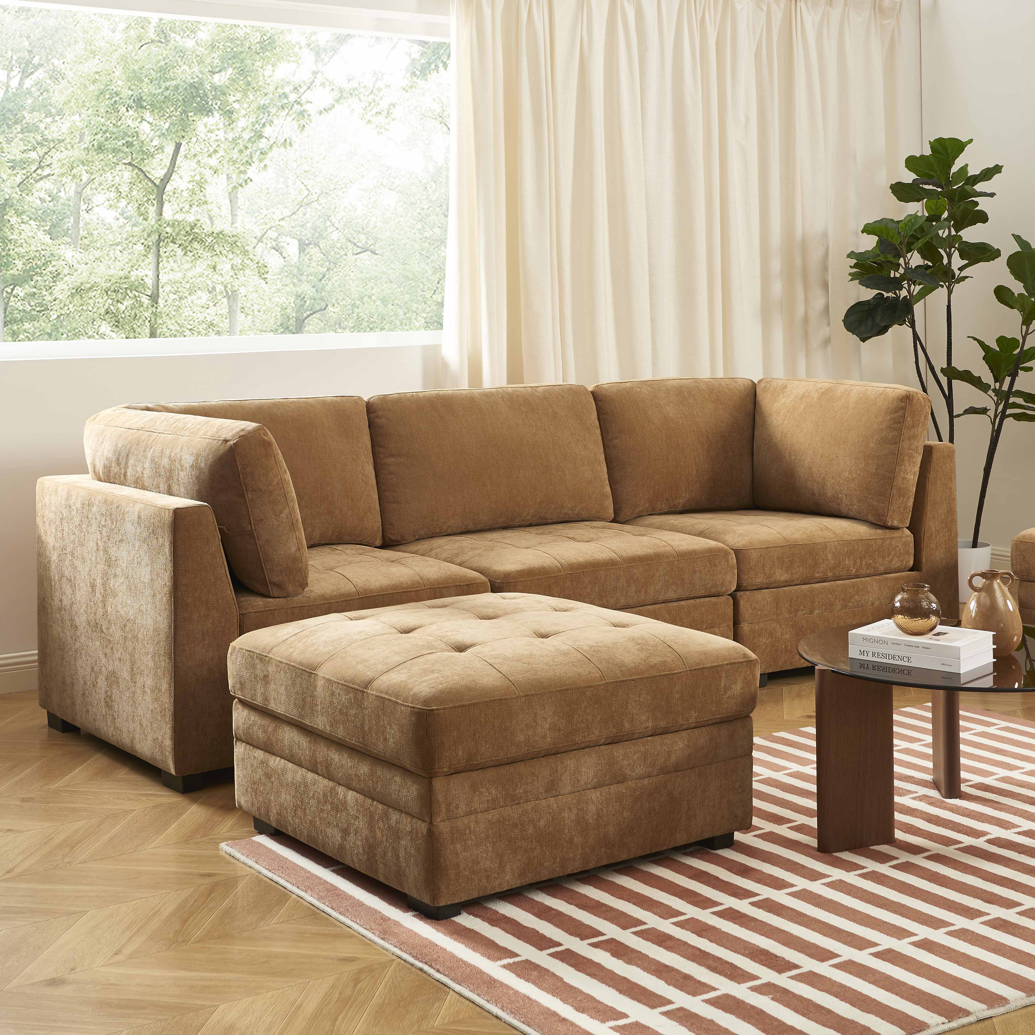 Pouf BILLIE avec coffre de rangement en tissu chenille écureuil