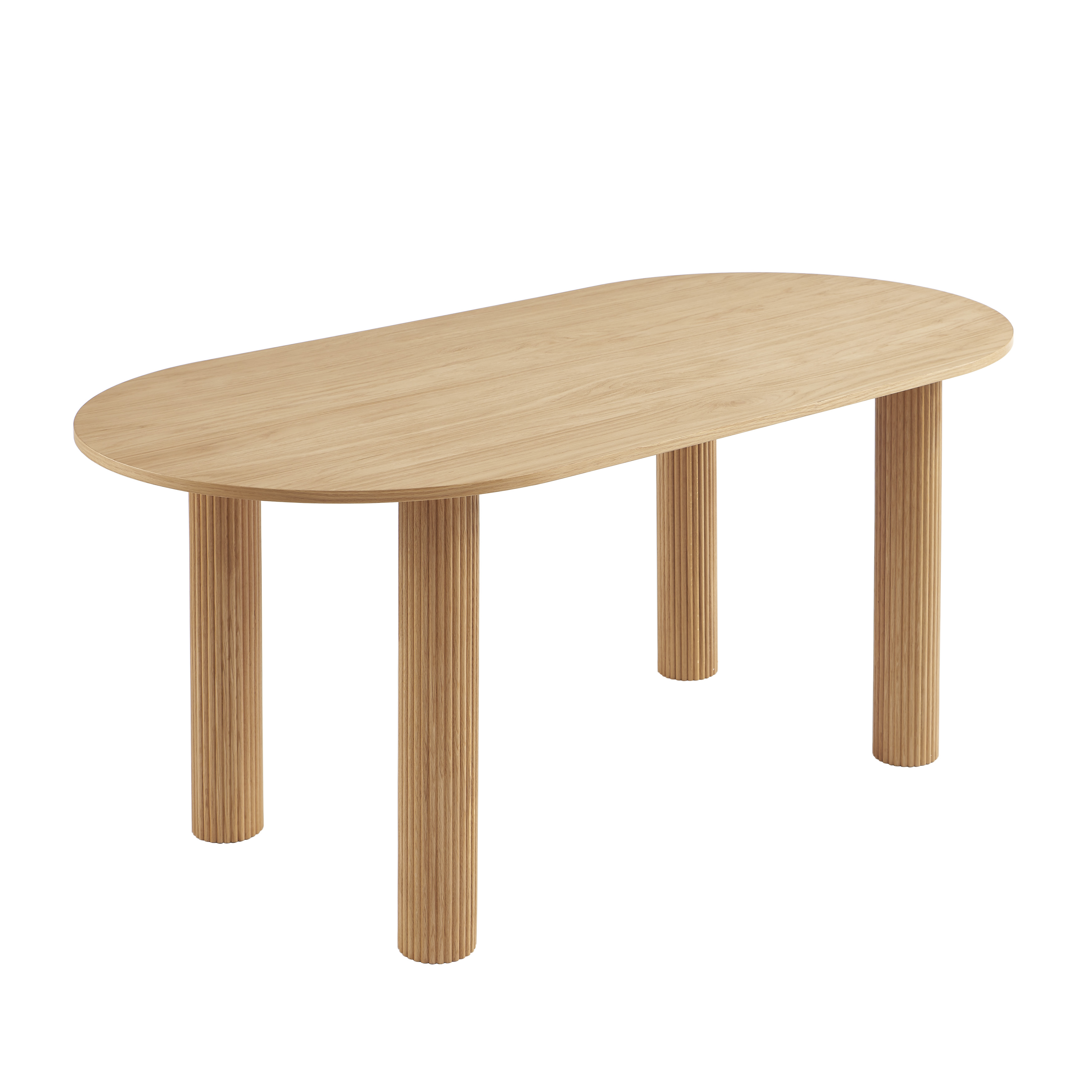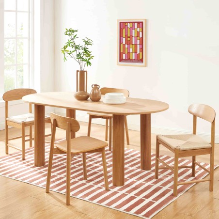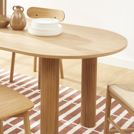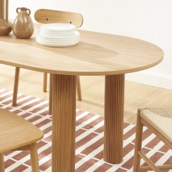 Le plateau en placage chêne séduit par sa teinte chaude et sa finition soignée. Il met en valeur la beauté naturelle du bois tout en apportant une atmosphère accueillante et chic à votre salle à manger.