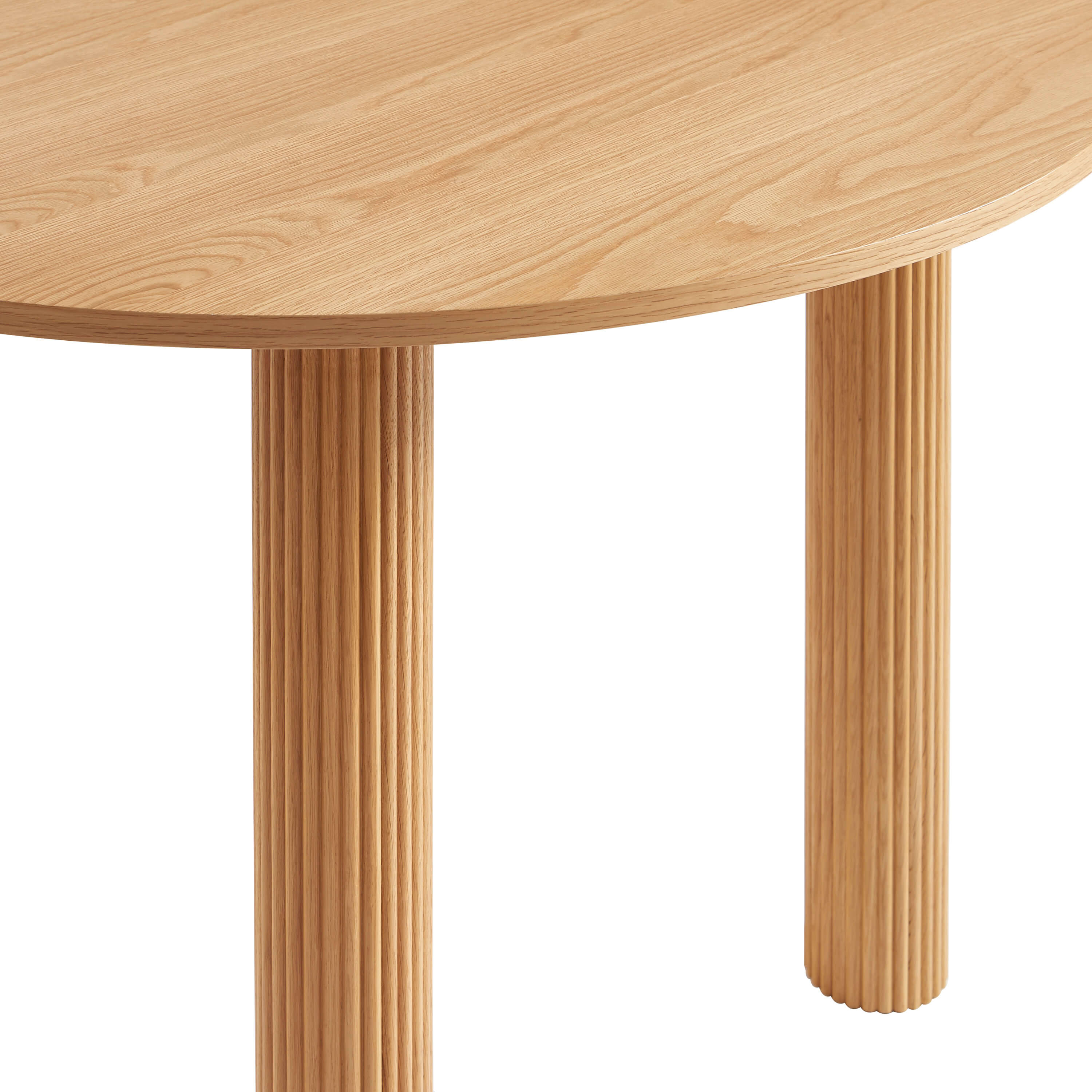 La table PENELOPE séduit par son esthétique épurée et sa finition en placage chêne. Son plateau rond de 115 cm de diamètre favorise la convivialité et s’adapte facilement à tous les styles de décoration, du scandinave au contemporain.