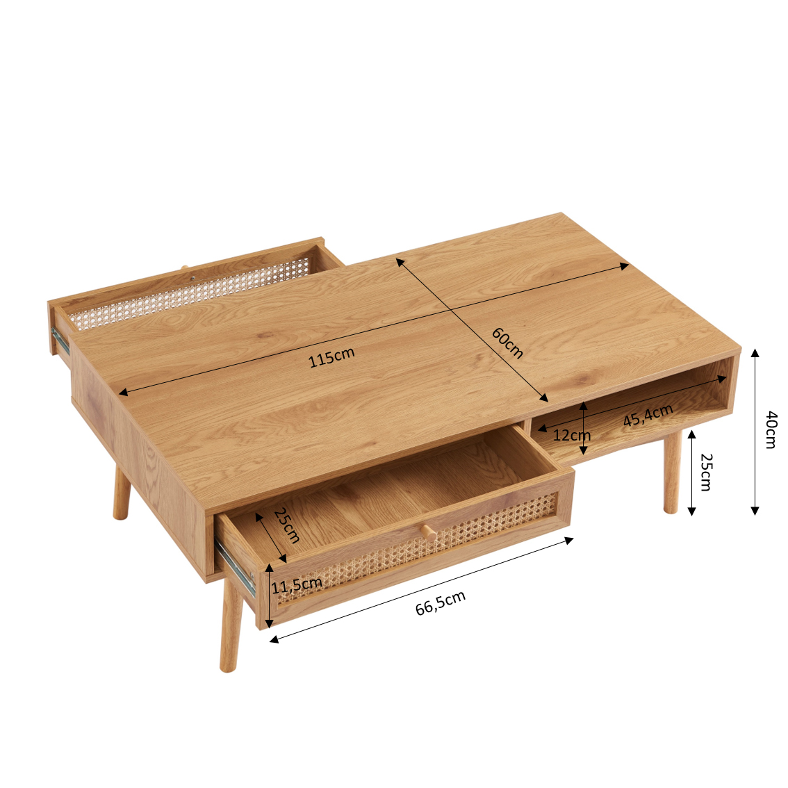 Table basse INES effet chêne et cannage rotin