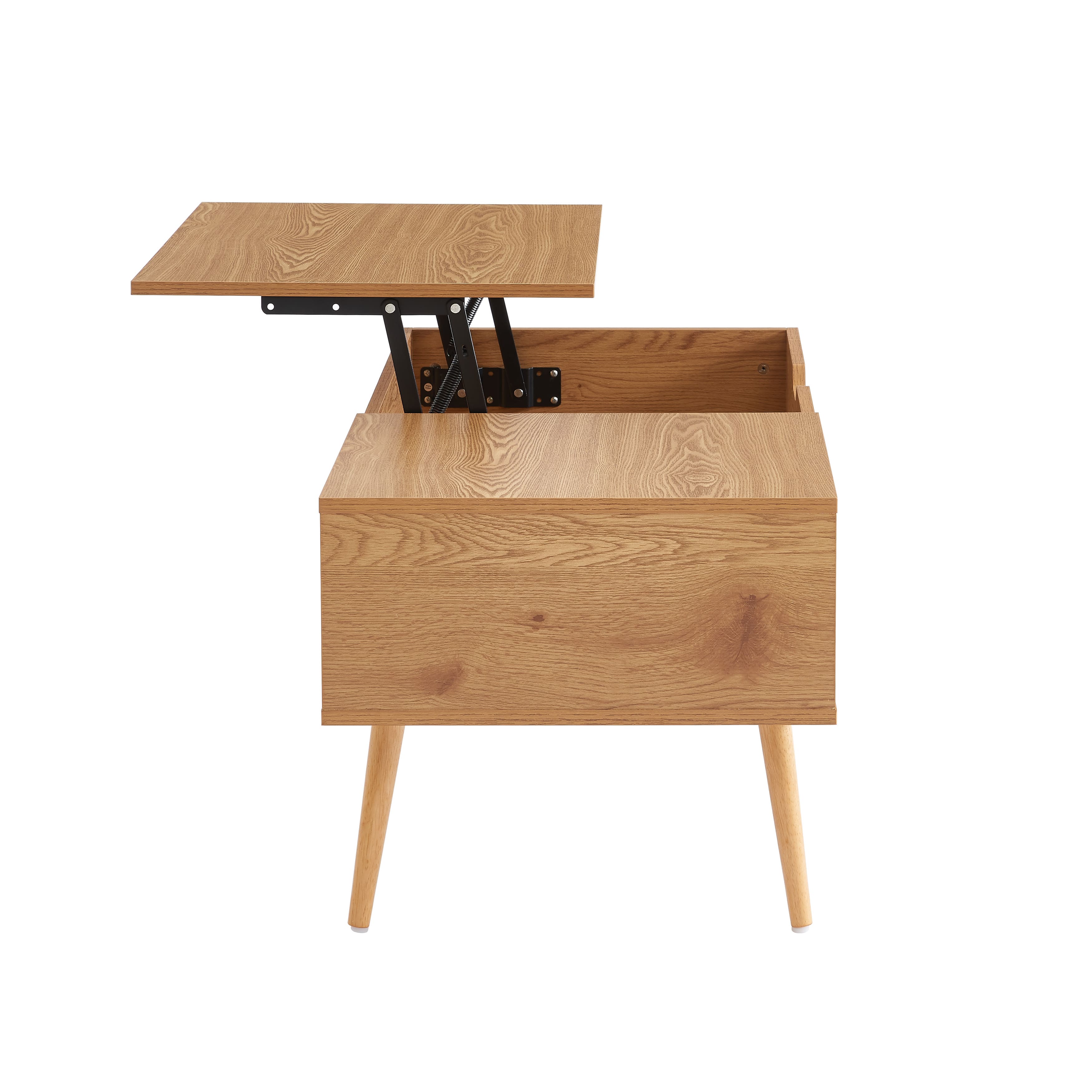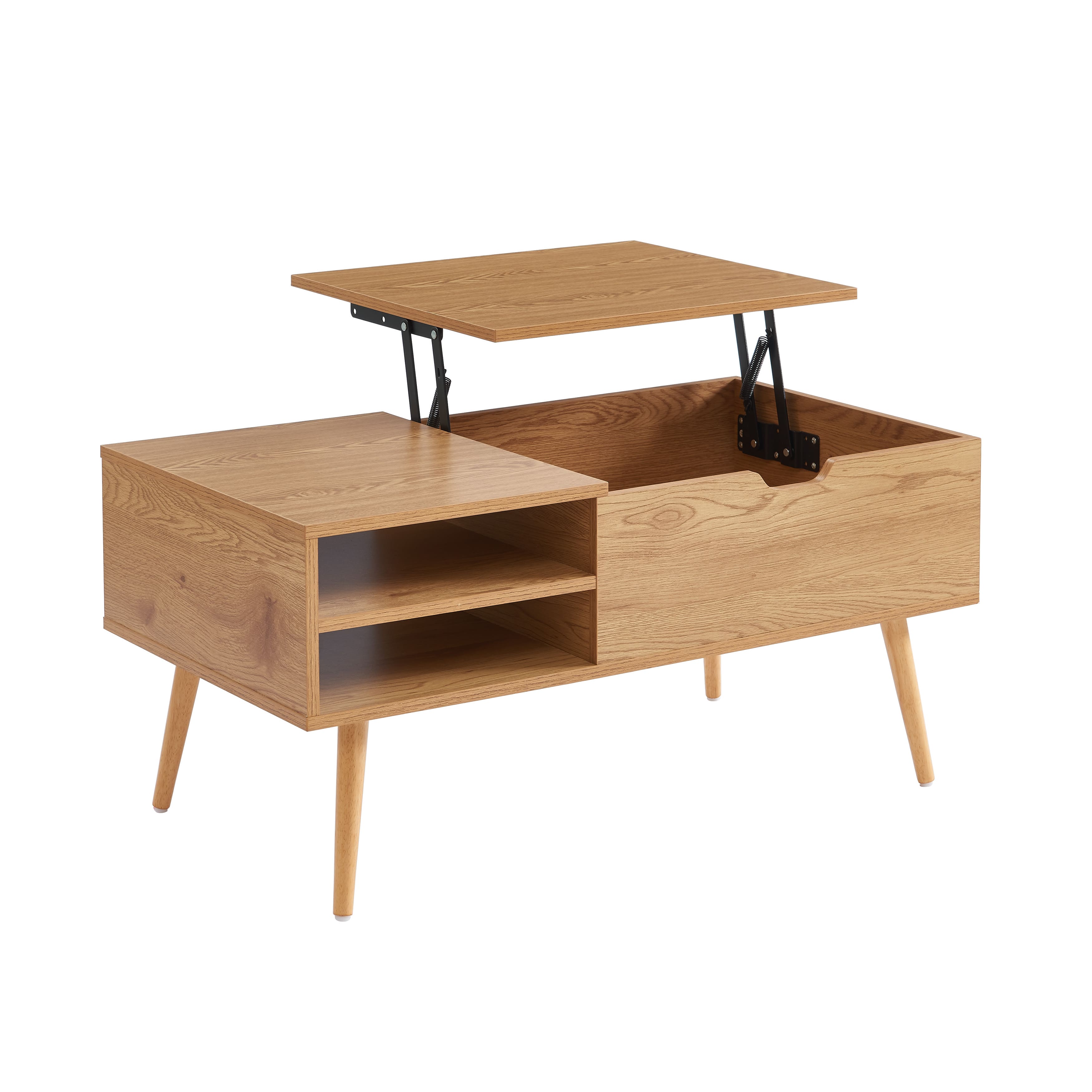 - Un plateau relevable servant de tablette et cachant un espace de rangement