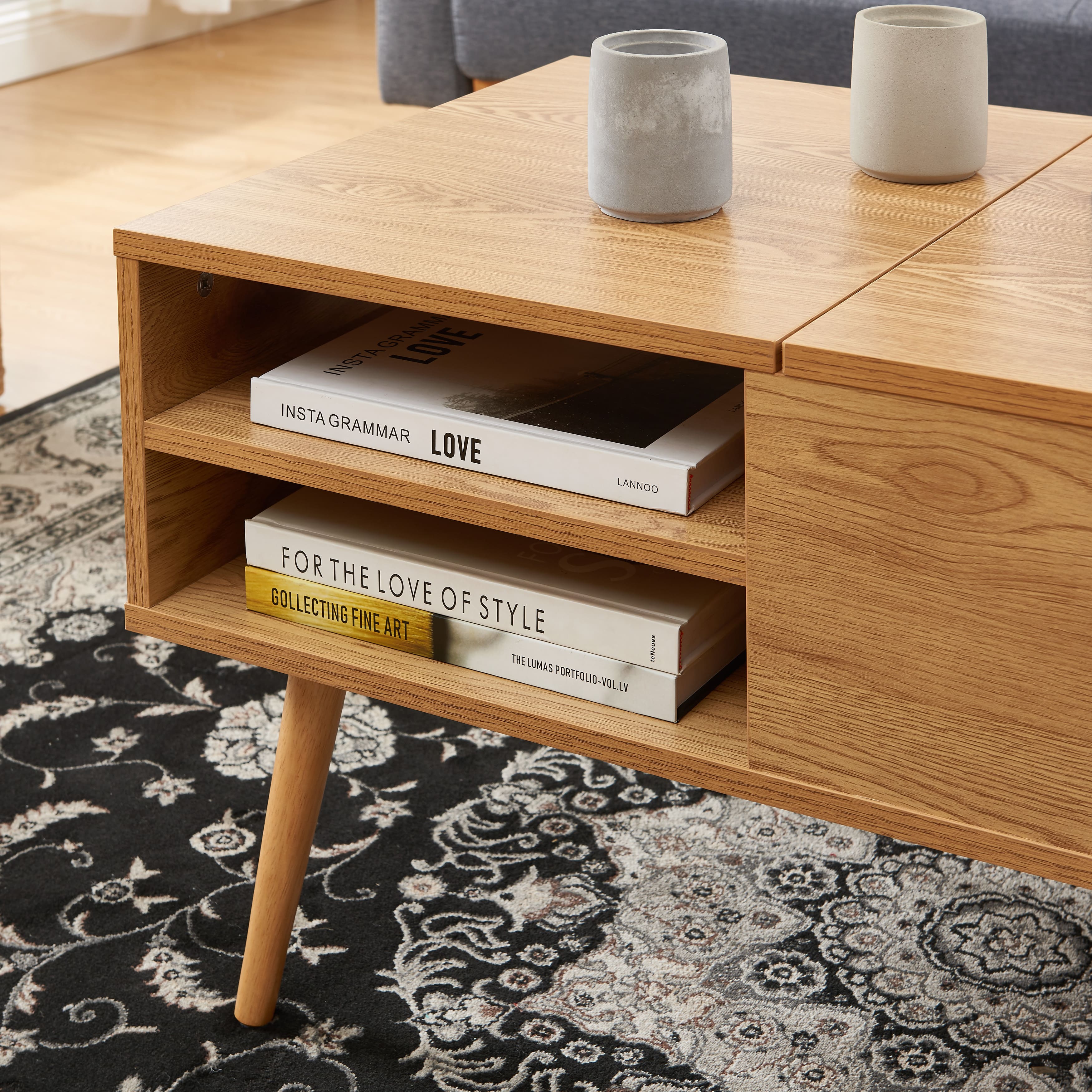 Équipée de deux niches de rangement et d'un plateau relevable, la table basse FLORENCE allie esthétique et praticité. Le plateau relevable permet d’ajuster la hauteur de la surface de la table pour plus de confort lors de vos repas ou de vos moments de détente. Les niches de rangement intégrées offrent un espace supplémentaire pour organiser vos objets du quotidien tout en gardant votre espace ordonné.