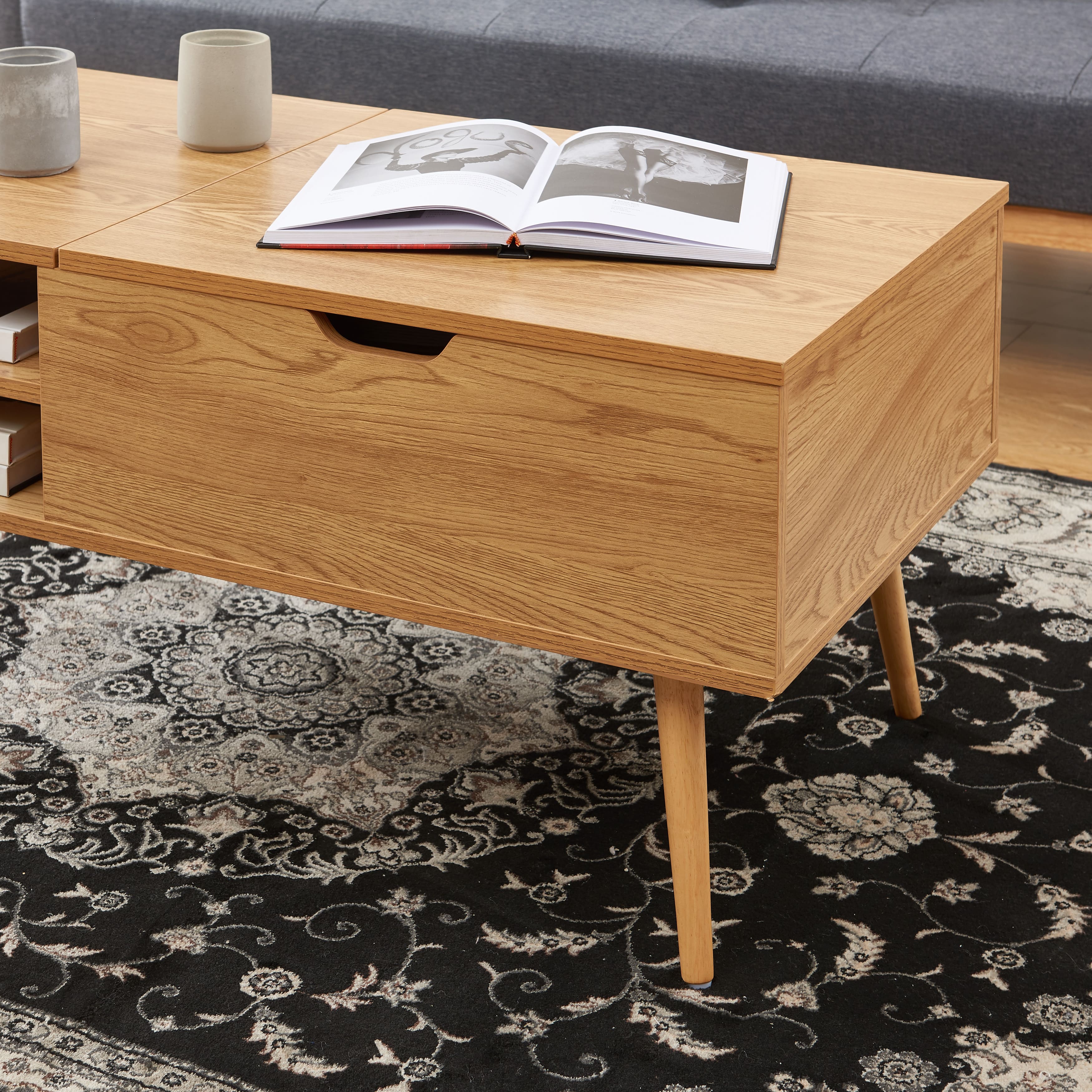 Table basse FLORENCE avec plateau relevable, effet chêne foncé - dimensions : 96 x 50 x 44 cm