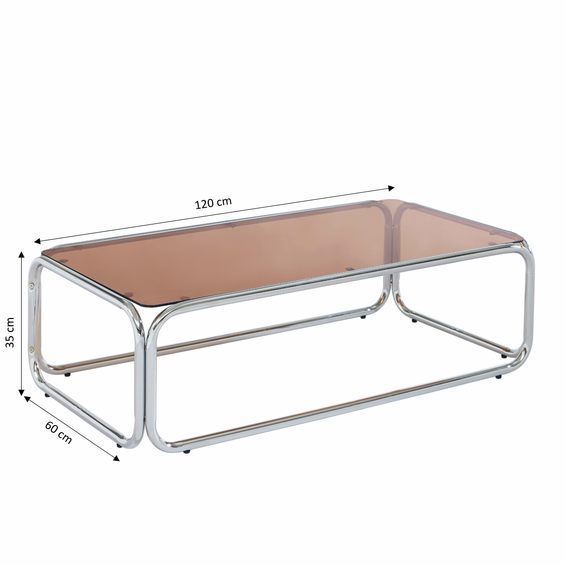 La table basse MAGGY combine style et praticité. Sa structure en chrome et son plateau en verre trempé orange foncé apportent une esthétique unique, idéale pour sublimer un intérieur contemporain ou design.
