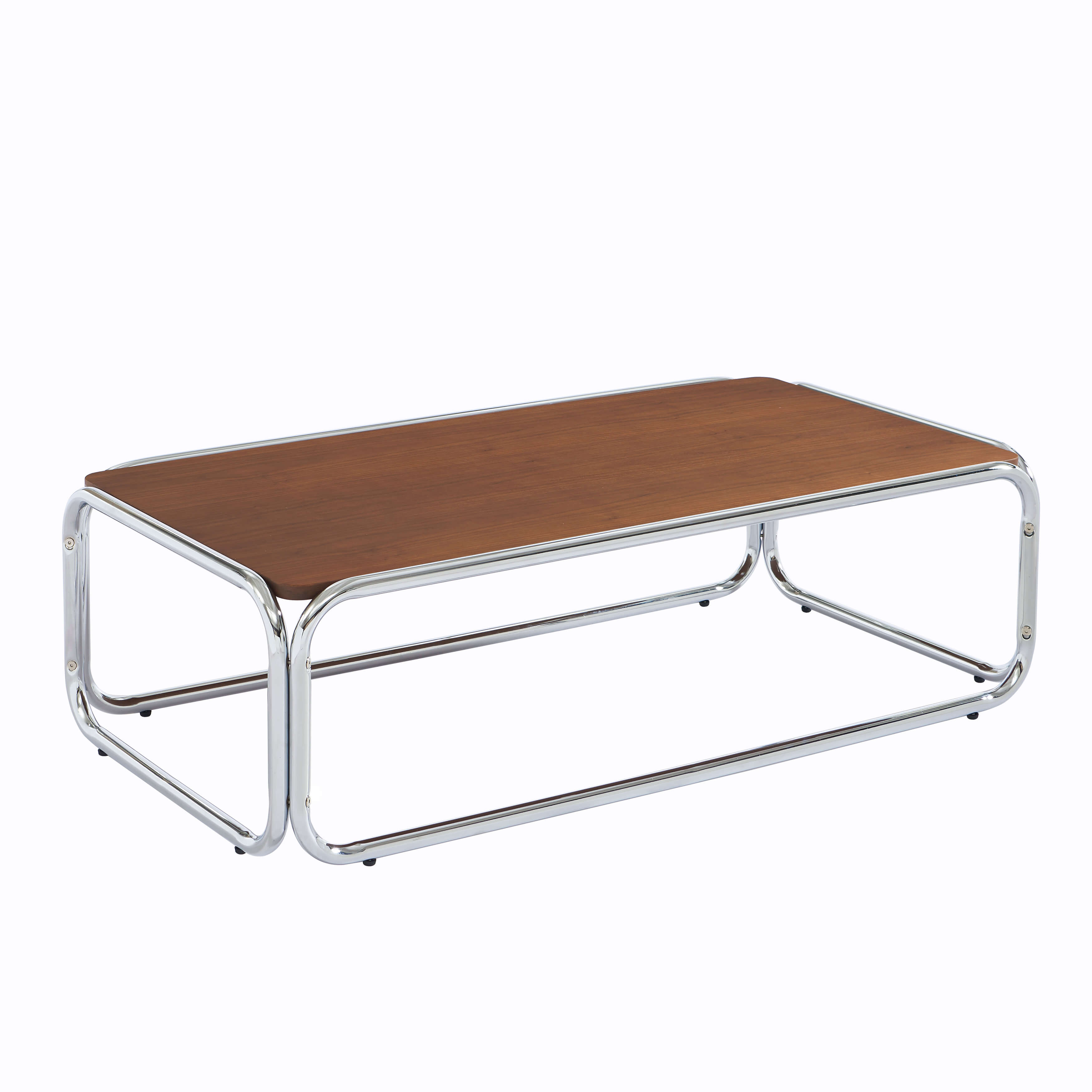 La table basse MAGGY combine élégance et fonctionnalité. Son plateau en placage noyer et sa structure en chrome s'adaptent parfaitement à tout type d'intérieur, qu'il soit contemporain ou chaleureux.