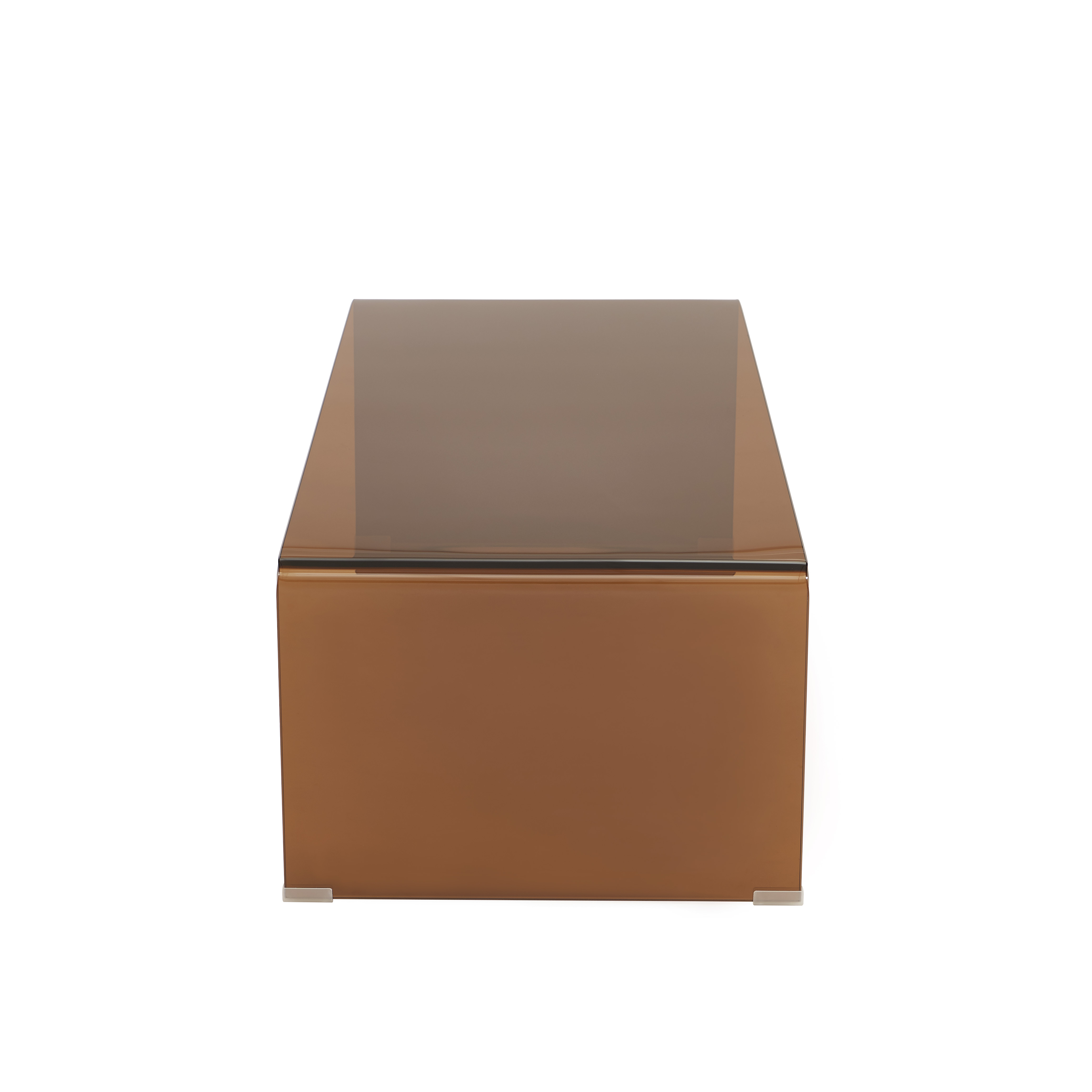 Ajoutez une touche de raffinement à votre salon avec la table basse GINZA en verre trempé ambré. Son design épuré et ses lignes arrondies en font une pièce élégante et moderne, idéale pour décorer votre espace de vie.