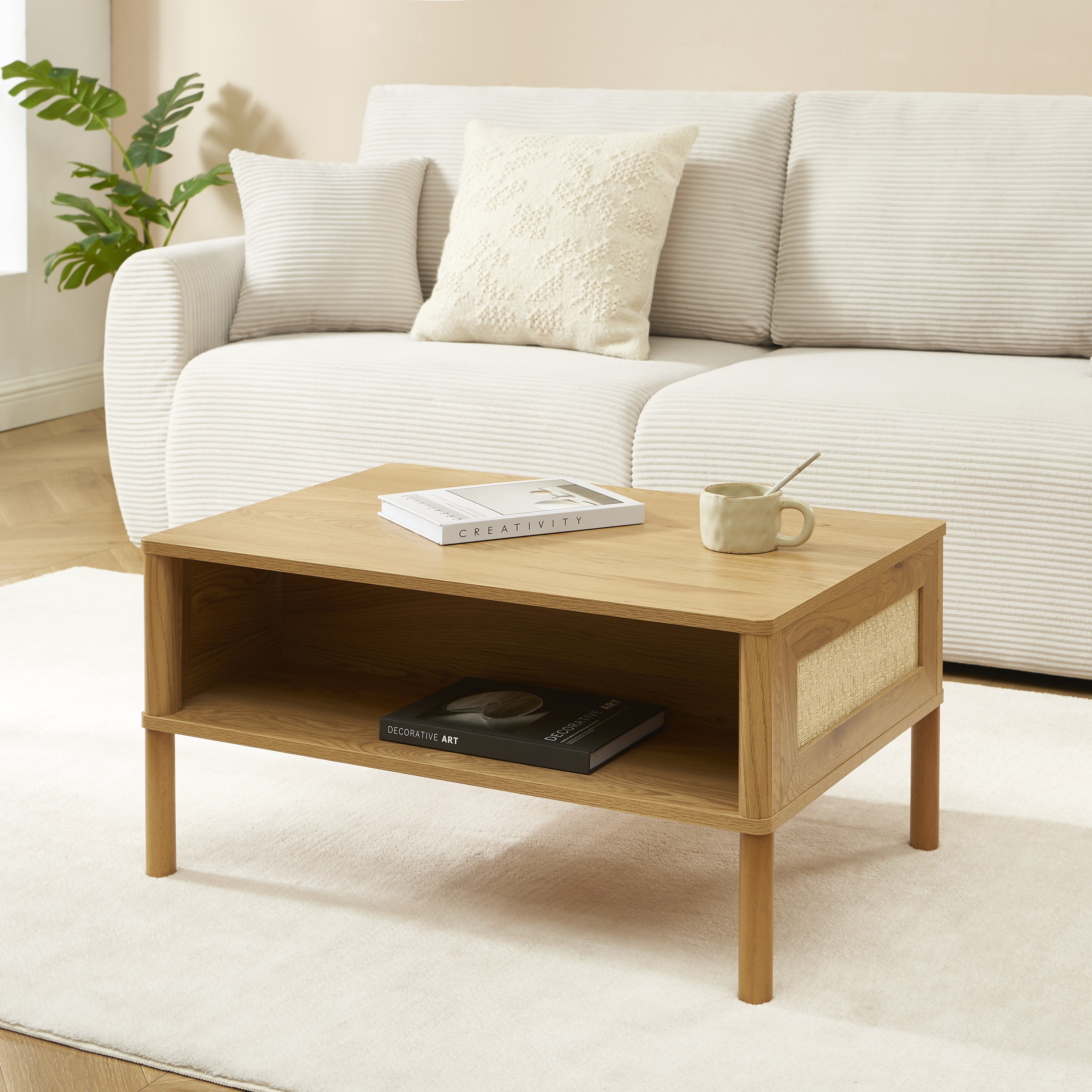 La table basse HAIDA séduit par son alliance entre effet chêne clair et rotin. Ce duo de matières apporte une atmosphère douce et chaleureuse à votre salon. Grâce à ses lignes épurées et son design intemporel, elle s'intègre aussi bien dans une décoration bohème que dans un intérieur contemporain ou naturel.