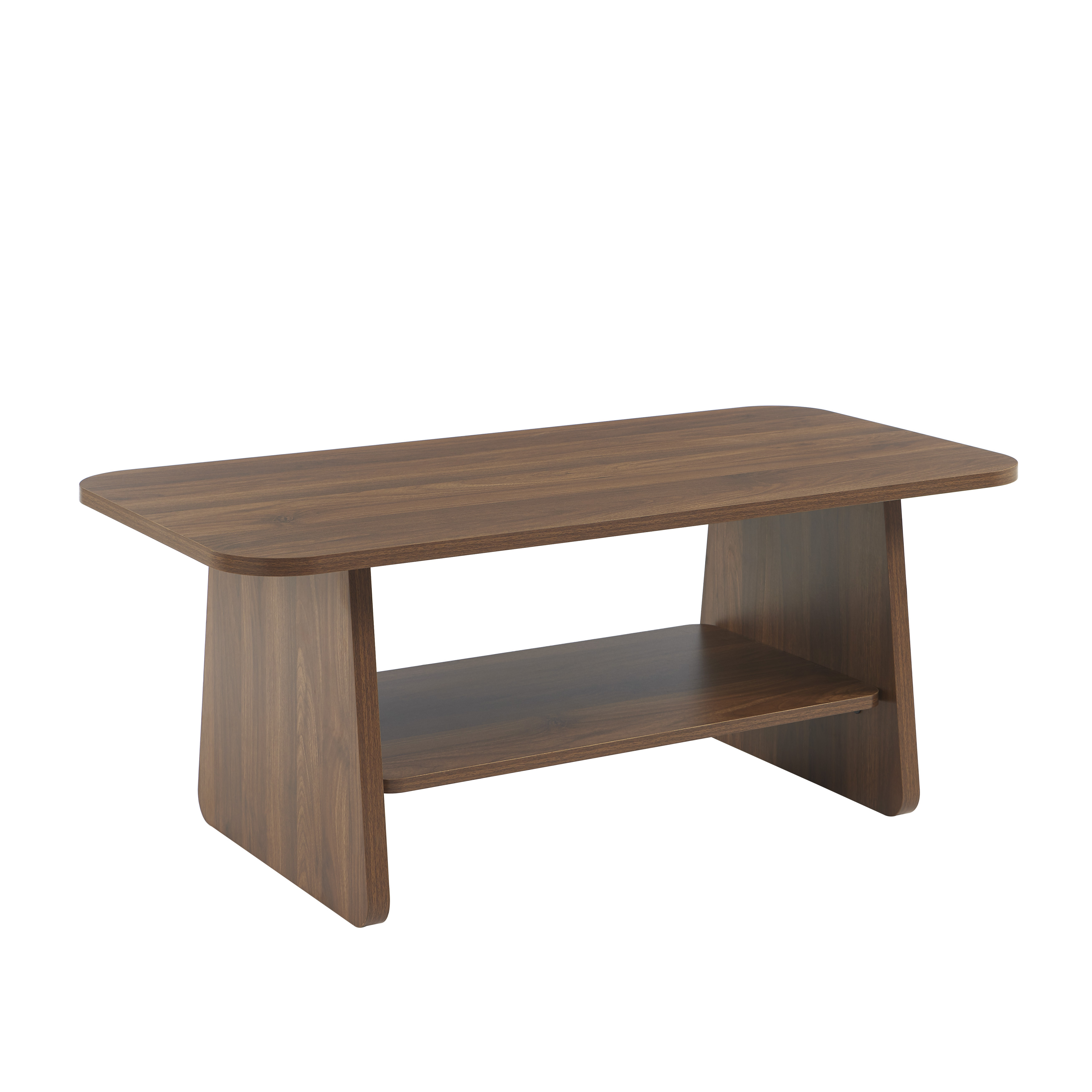 La table basse LANGO séduit par son design effet bois et son piètement asymétrique. Avec son double plateau pratique, elle allie design et fonctionnalité dans un format compact.