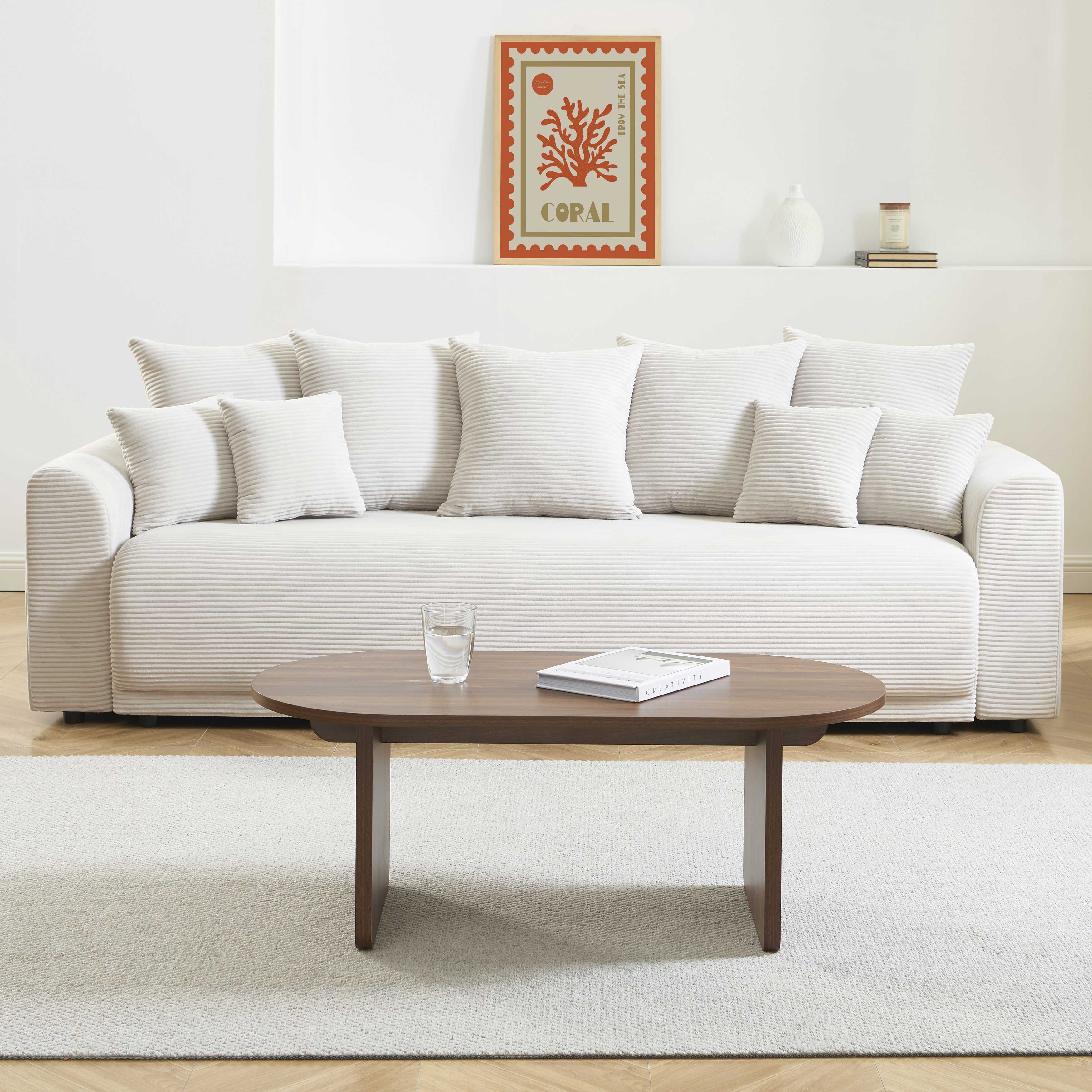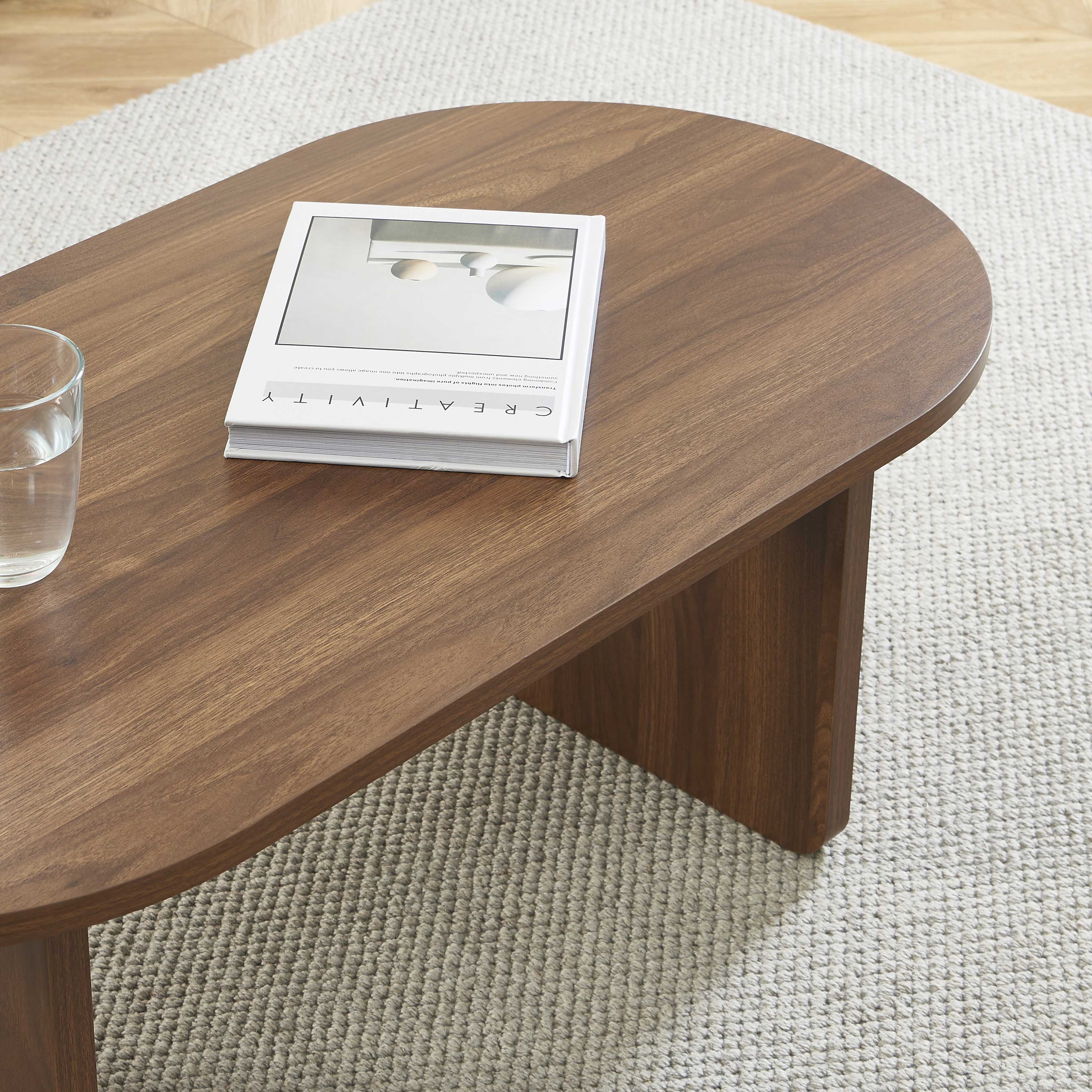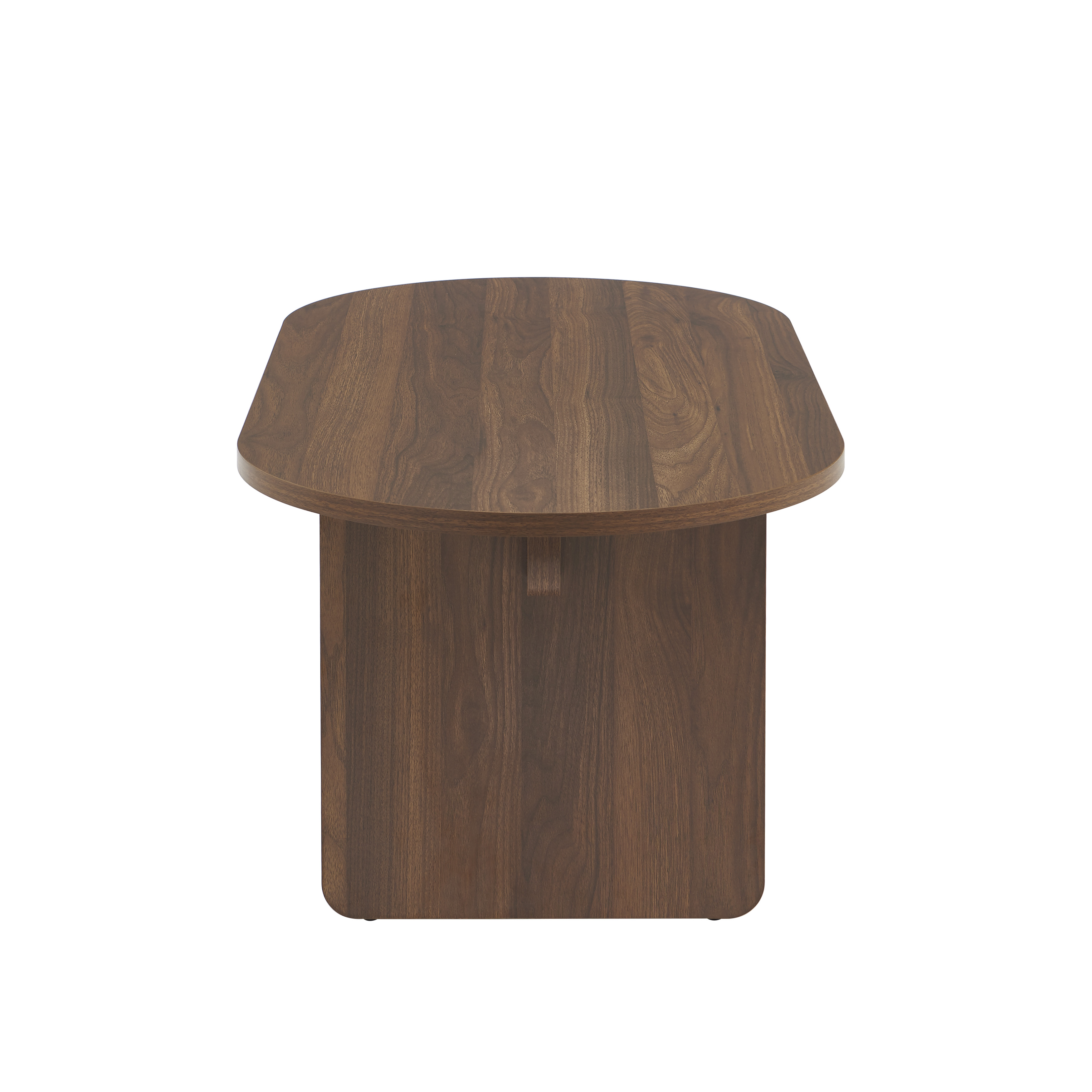 La table basse AFFY séduit par sa silhouette ovale et ses lignes épurées, idéales pour adoucir l'ambiance d'un salon. Son style rétro et naturel s'intègre parfaitement dans un intérieur contemporain, vintage ou scandinave. Son plateau en MDF est recouvert d'un revêtement mélaminé effet noyer qui imite à merveille les nuances du bois tout en étant résistant et facile à entretenir au quotidien. Le rendu est élégant, tout en conservant une grande praticité.