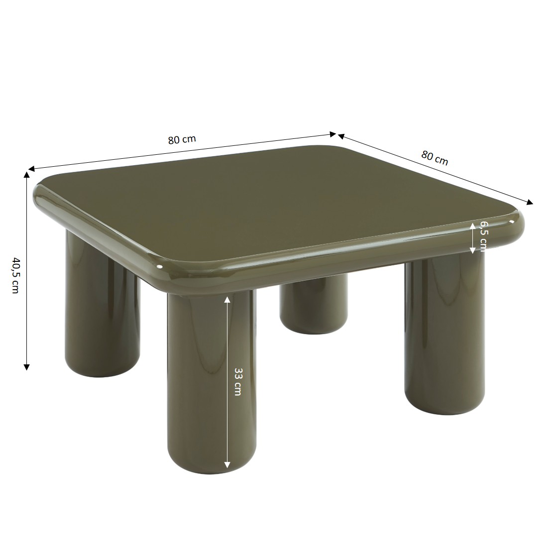 Table basse MOXY finition laquée brillante vert olive 80cm