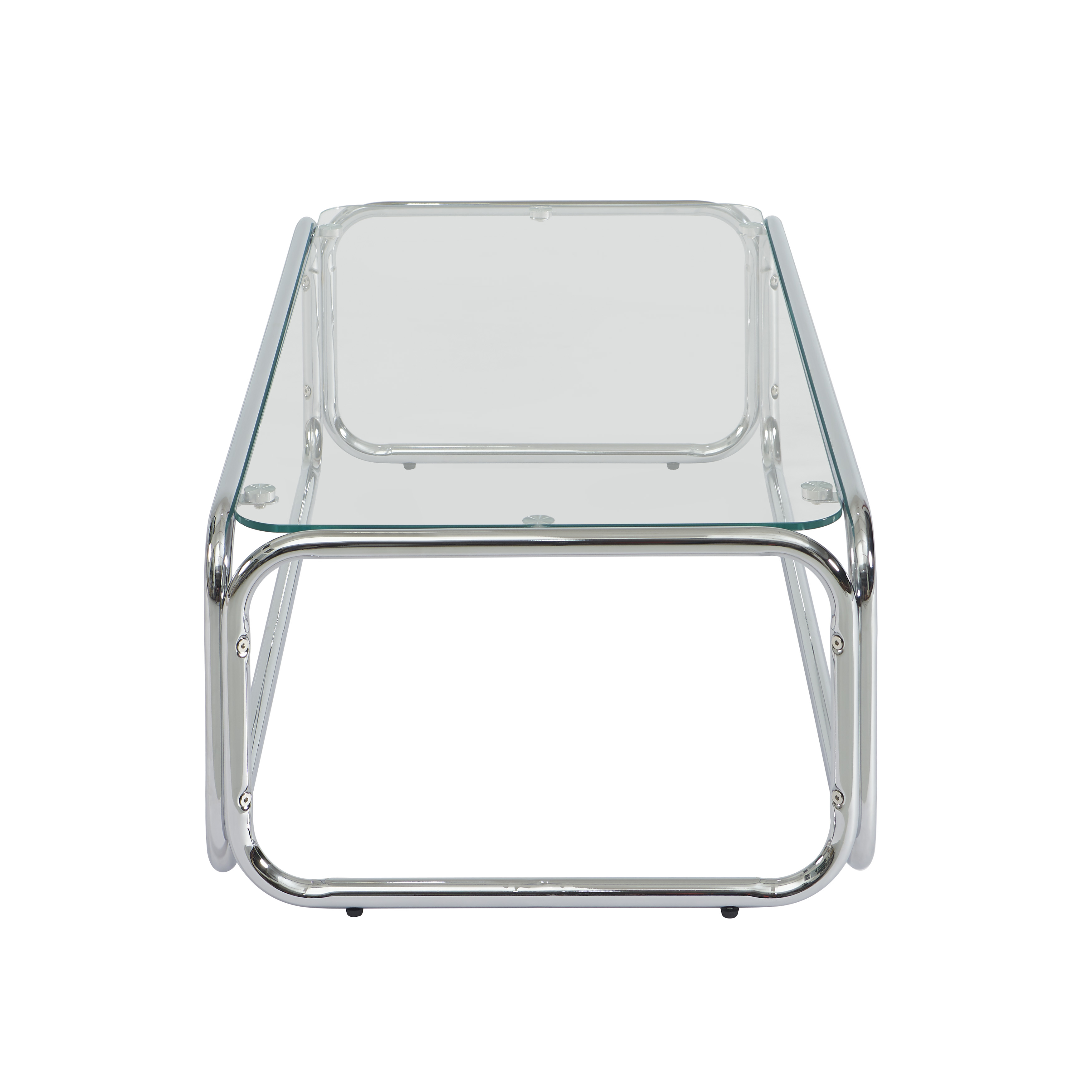 Table basse MAGGY verre trempé transparent et structure en chrome
