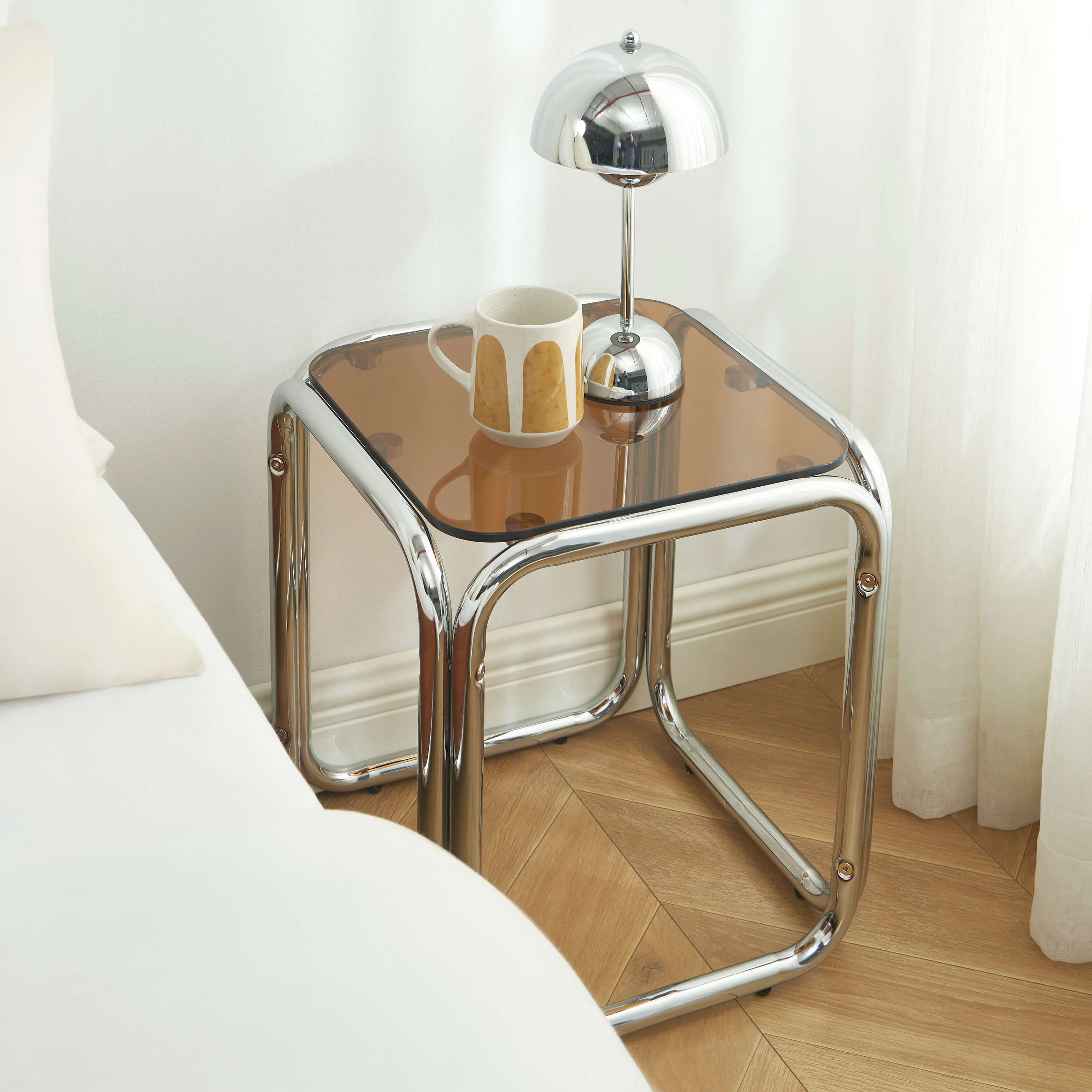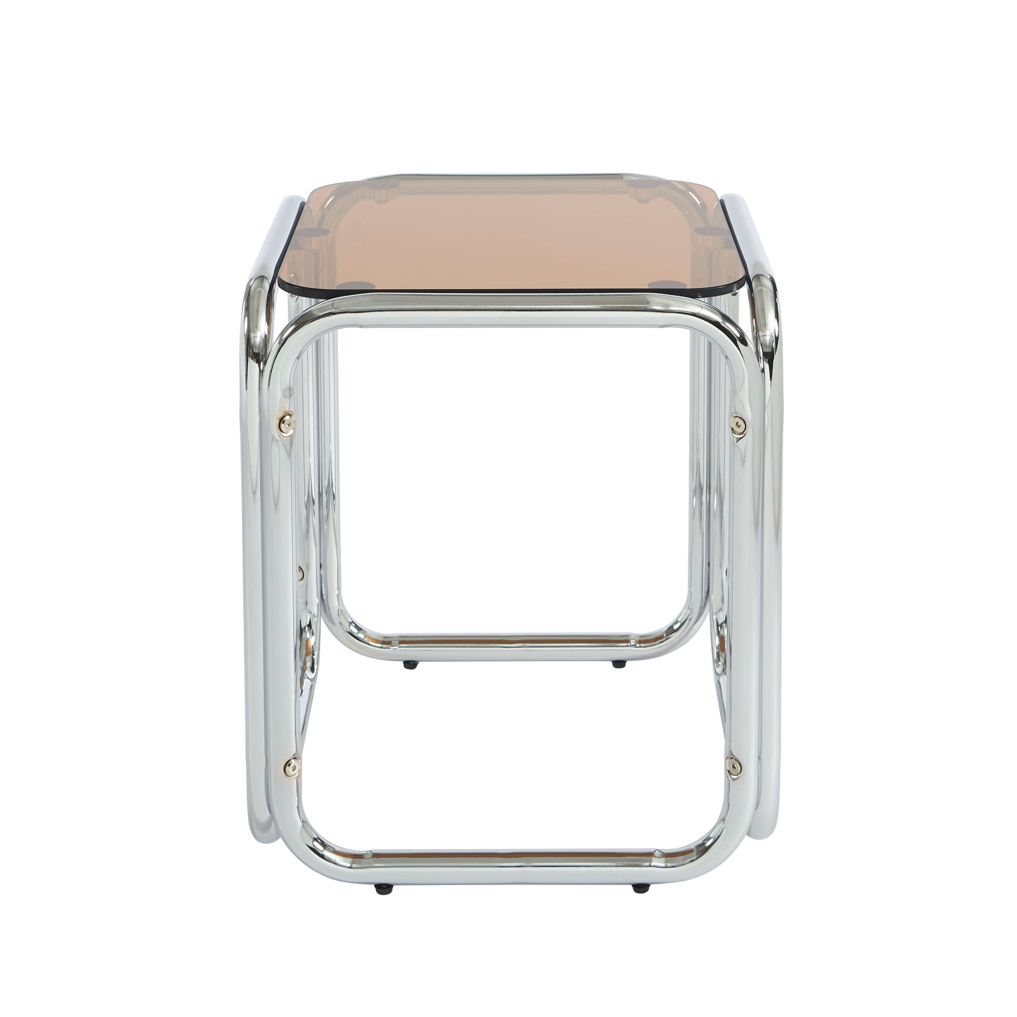 Table d'appoint MAGGY verre trempé orange structure en chrome