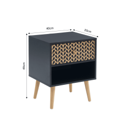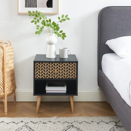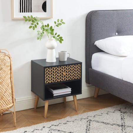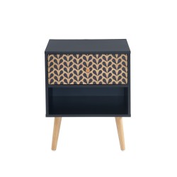 Apportez une touche scandinave et bohème à votre chambre à coucher avec le chevet CAPUCINE, doté d'un tiroir à motifs et d'une niche pour un rangement élégant et fonctionnel.