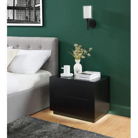 Ajoutez une touche moderne et lumineuse à votre chambre avec la table de chevet MORPHEE, dotée de 2 tiroirs et d'une ceinture à LED blanche.