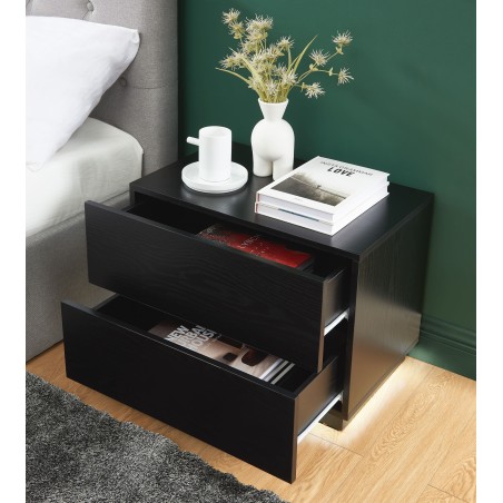 Dotée de 2 tiroirs spacieux, la table de chevet MORPHEE offre un espace de rangement optimisé pour vos livres, vos magazines, vos lunettes et vos petits objets personnels. Les tiroirs coulissants s'ouvrent et se ferment facilement, vous permettant d'accéder rapidement à vos affaires.