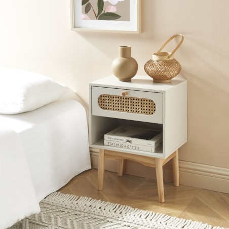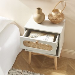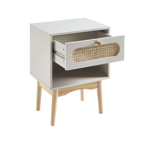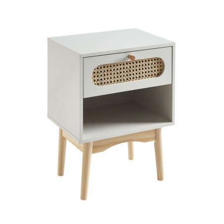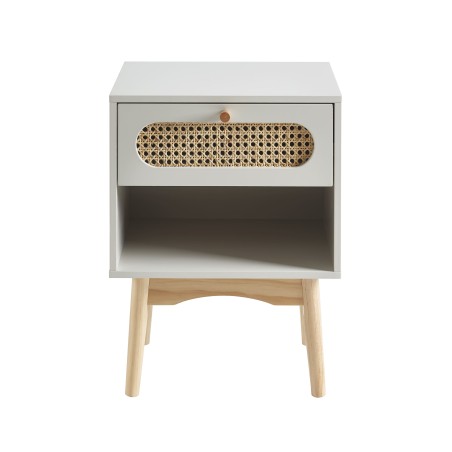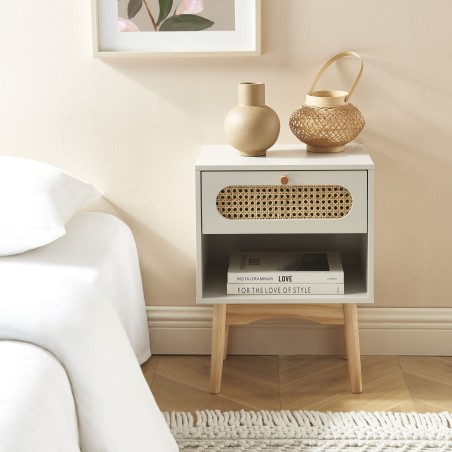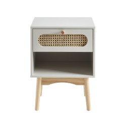 Table de chevet SIXTINE gris perle et cannage rotin