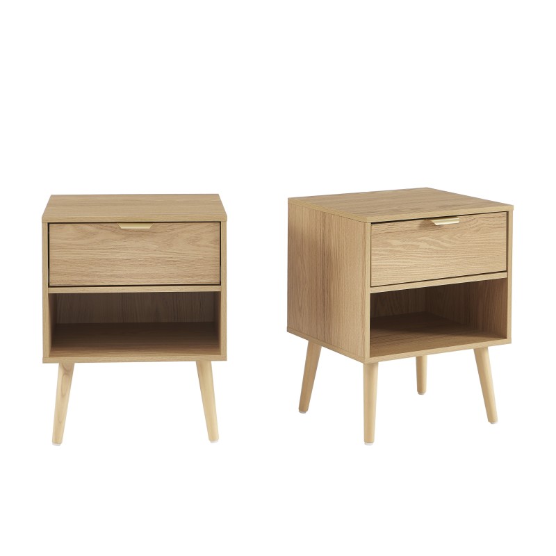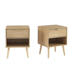 Lot de 2 tables de chevet JEANNE effet chêne