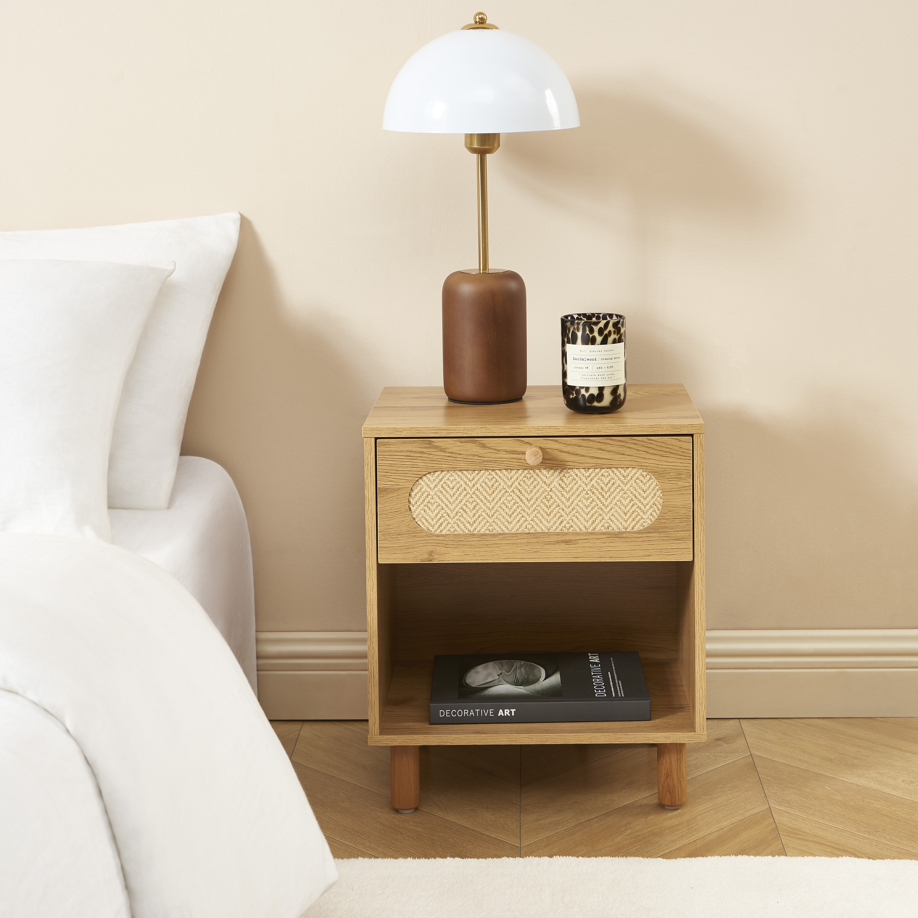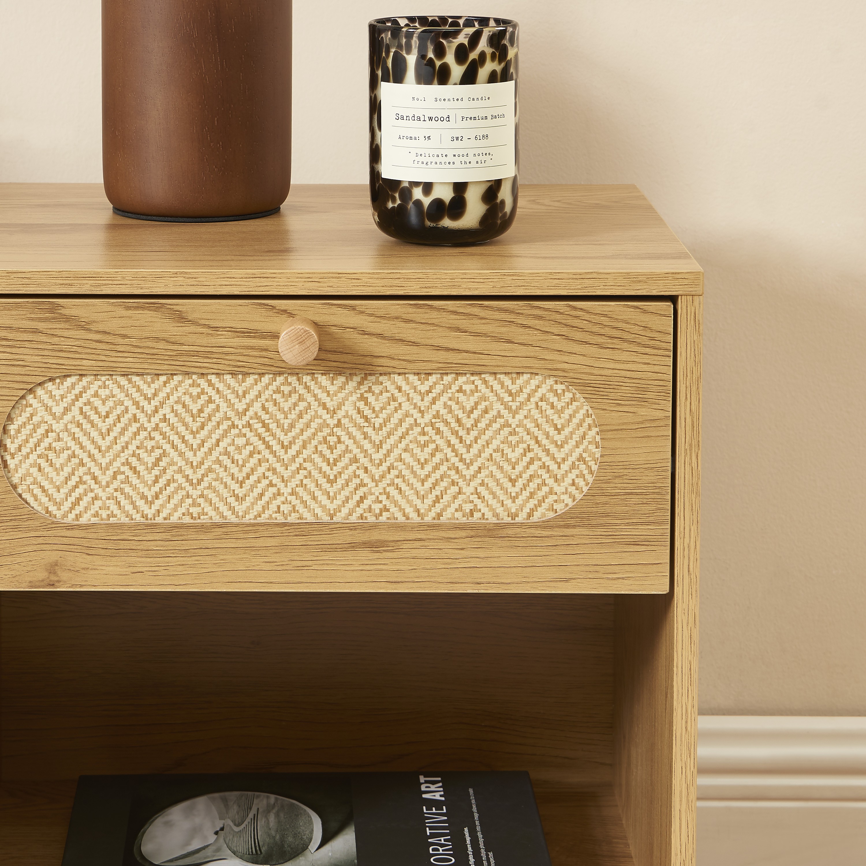 Table de chevet BAAMA effet chêne et rotin naturel 1 tiroir