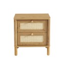 Table de chevet HAIDA effet chêne et rotin 2 tiroirs