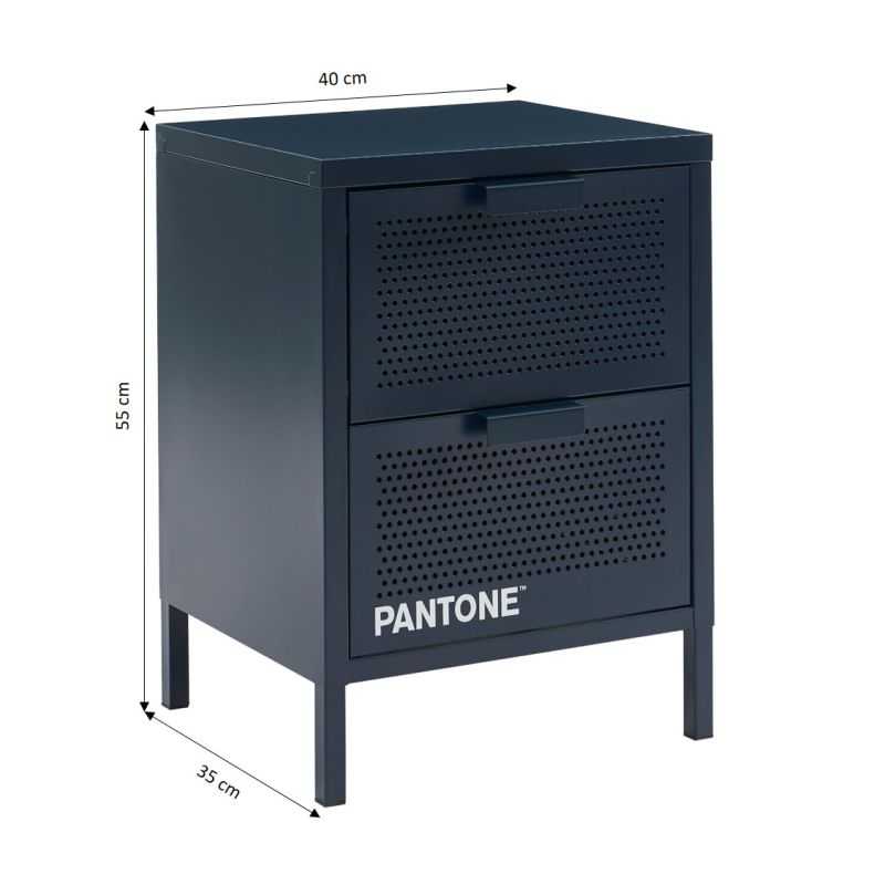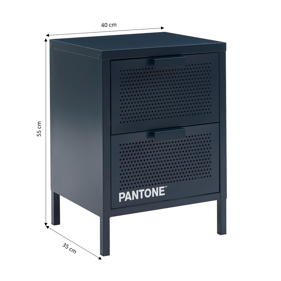 Table de chevet PANTONE métal bleu nuit double tiroirs 40cm