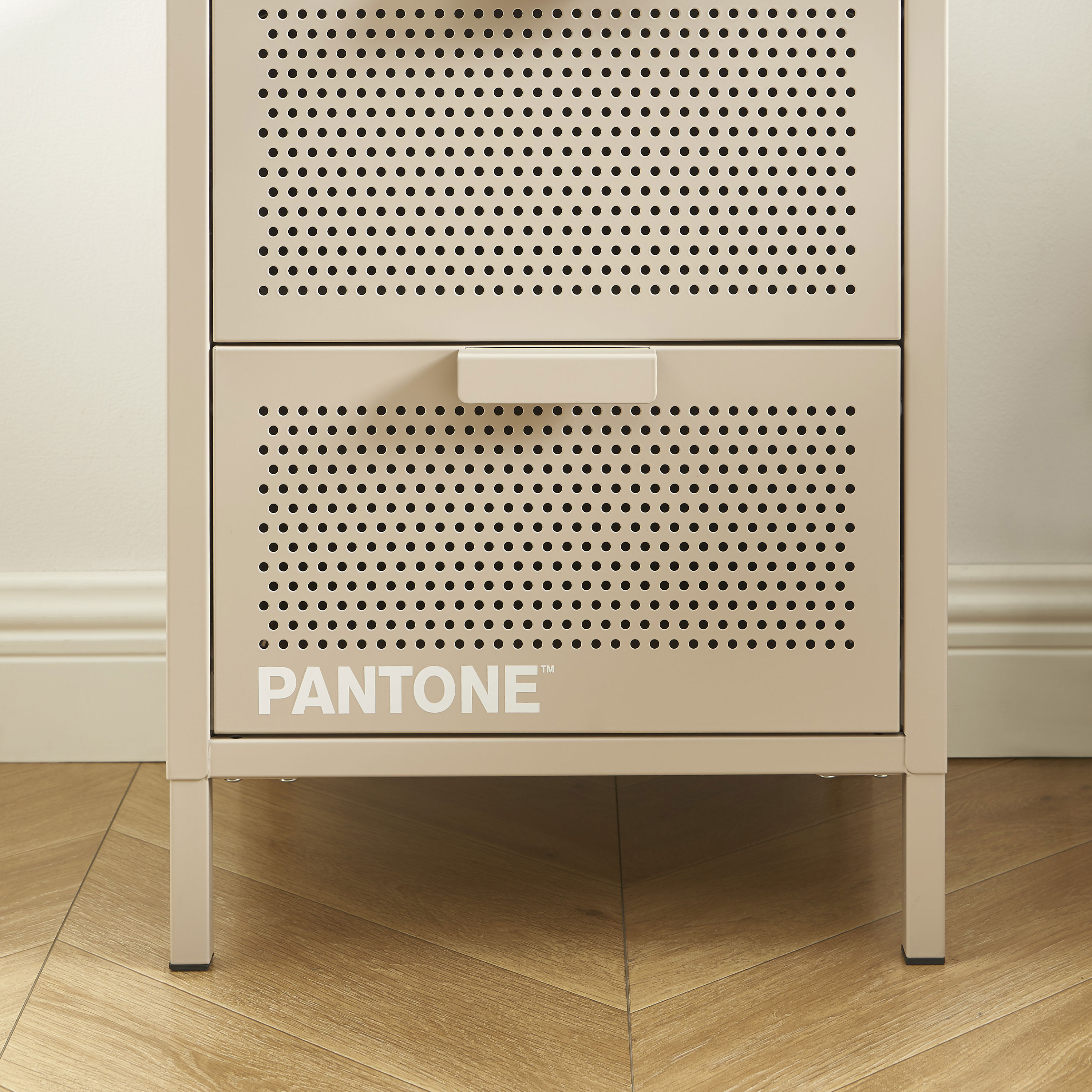 • Table de chevet PANTONE métal taupe double tiroirs 40cm