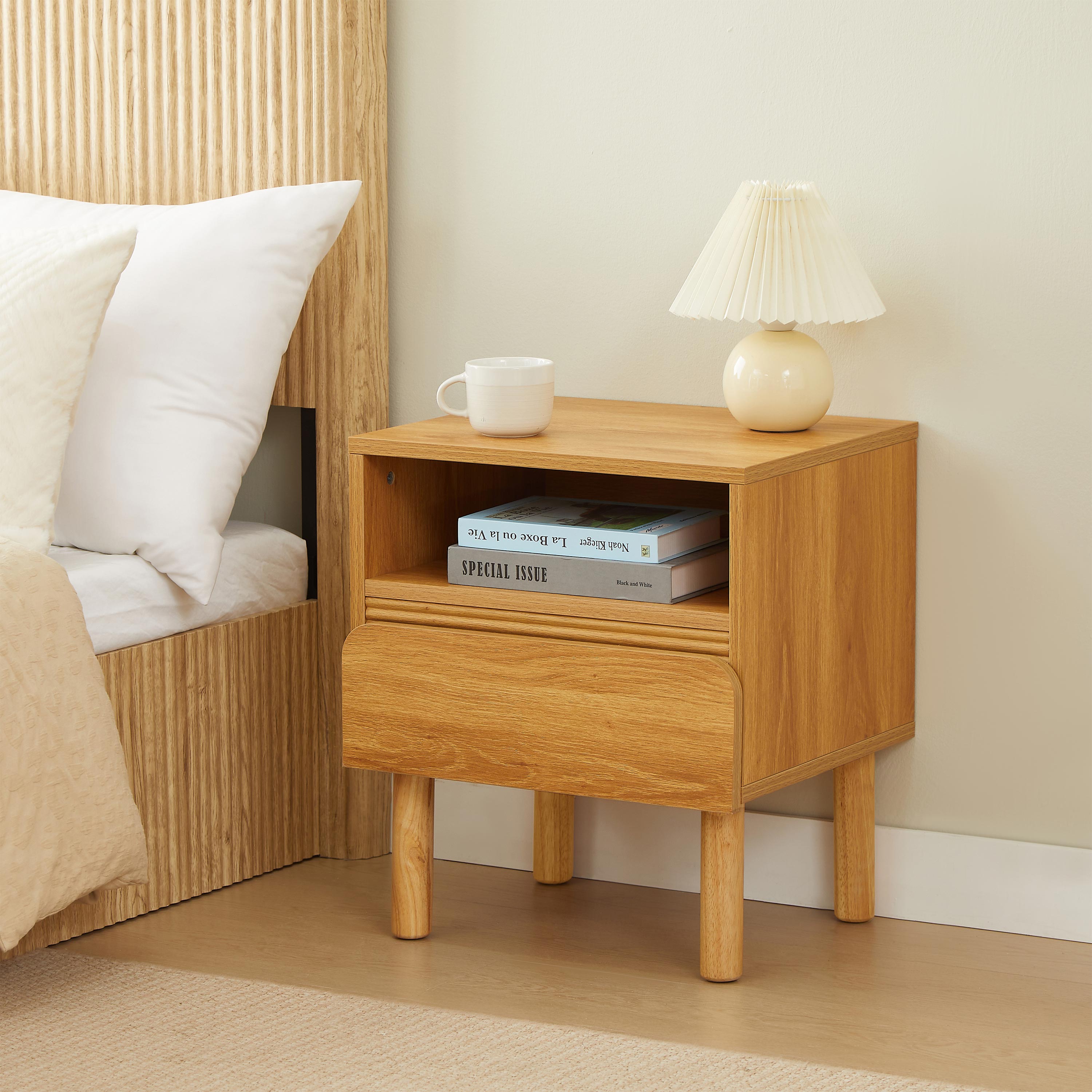 Équipée d'un tiroir spacieux et d'une niche, la table de chevet ORO permet de garder vos indispensables de nuit à portée de main : livres, lunettes ou encore petits objets personnels. Sa surface supérieure accueille aisément une lampe de chevet ou des éléments décoratifs.
