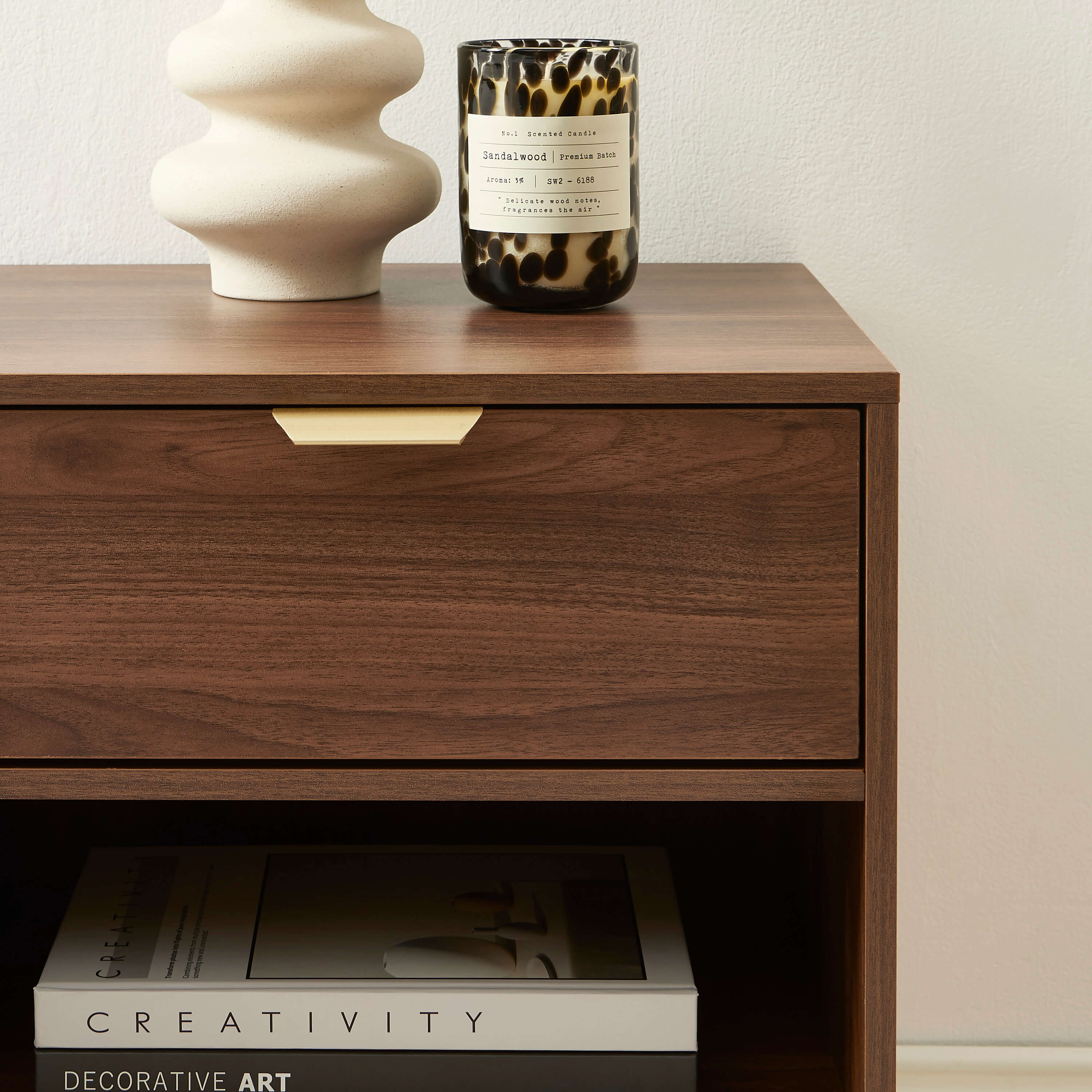 Avec leur design épuré et leurs finitions effet noyer, les chevets JEANNE trouvent aisément leur place, même dans les petits espaces.