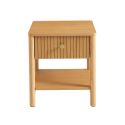La table de chevet CLEO se distingue par son placage chêne naturel et son tiroir cannelé qui lui donnent une allure chic et contemporaine. Ses lignes sobres et son esthétique chaleureuse s’intègrent facilement dans tous les styles de chambres, qu’elles soient modernes, scandinaves ou classiques.