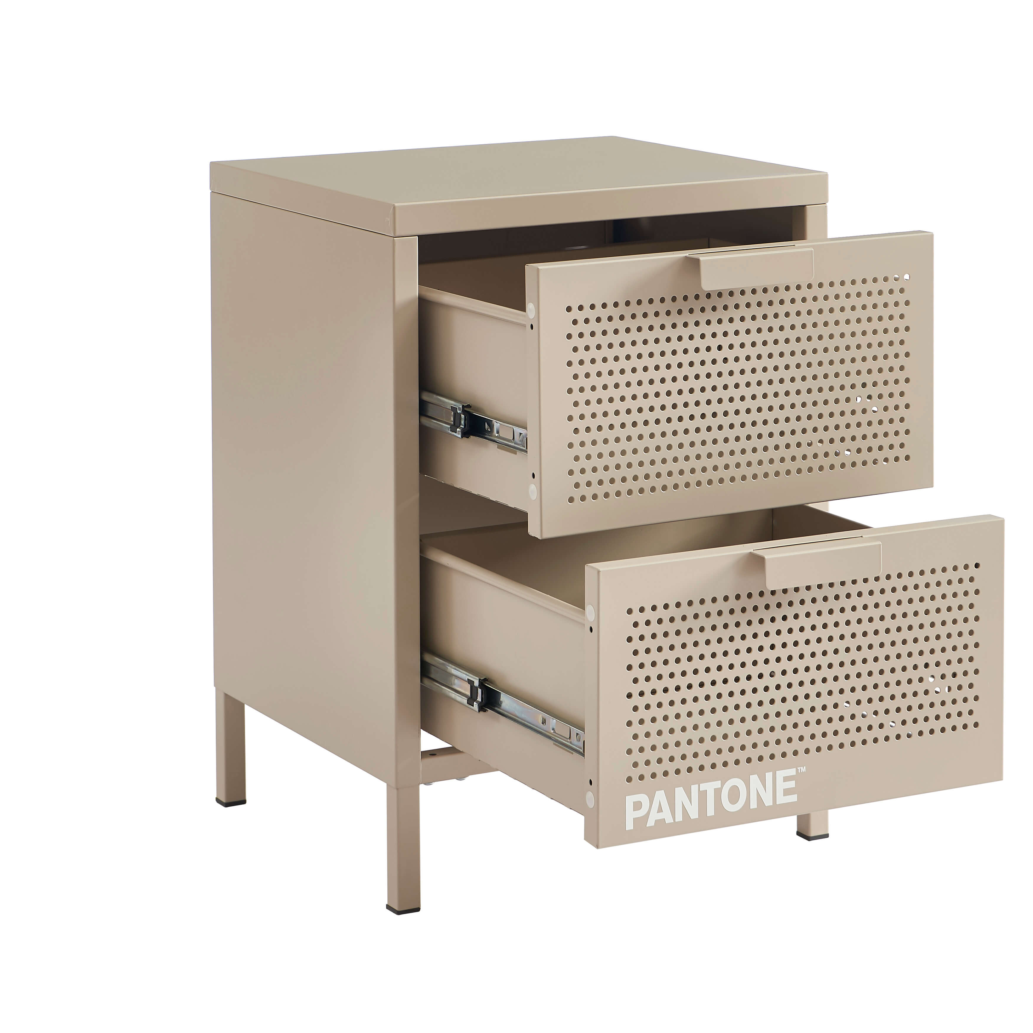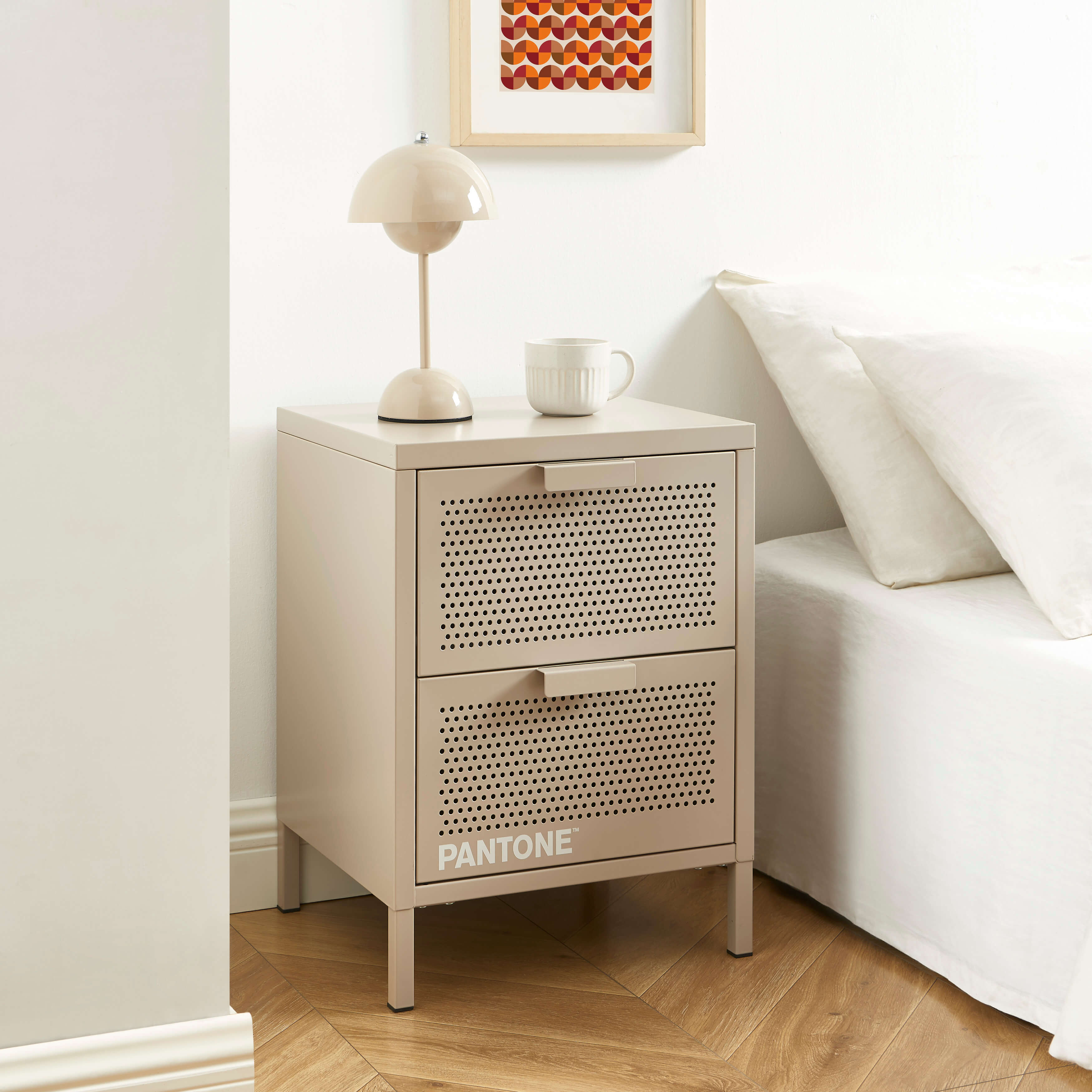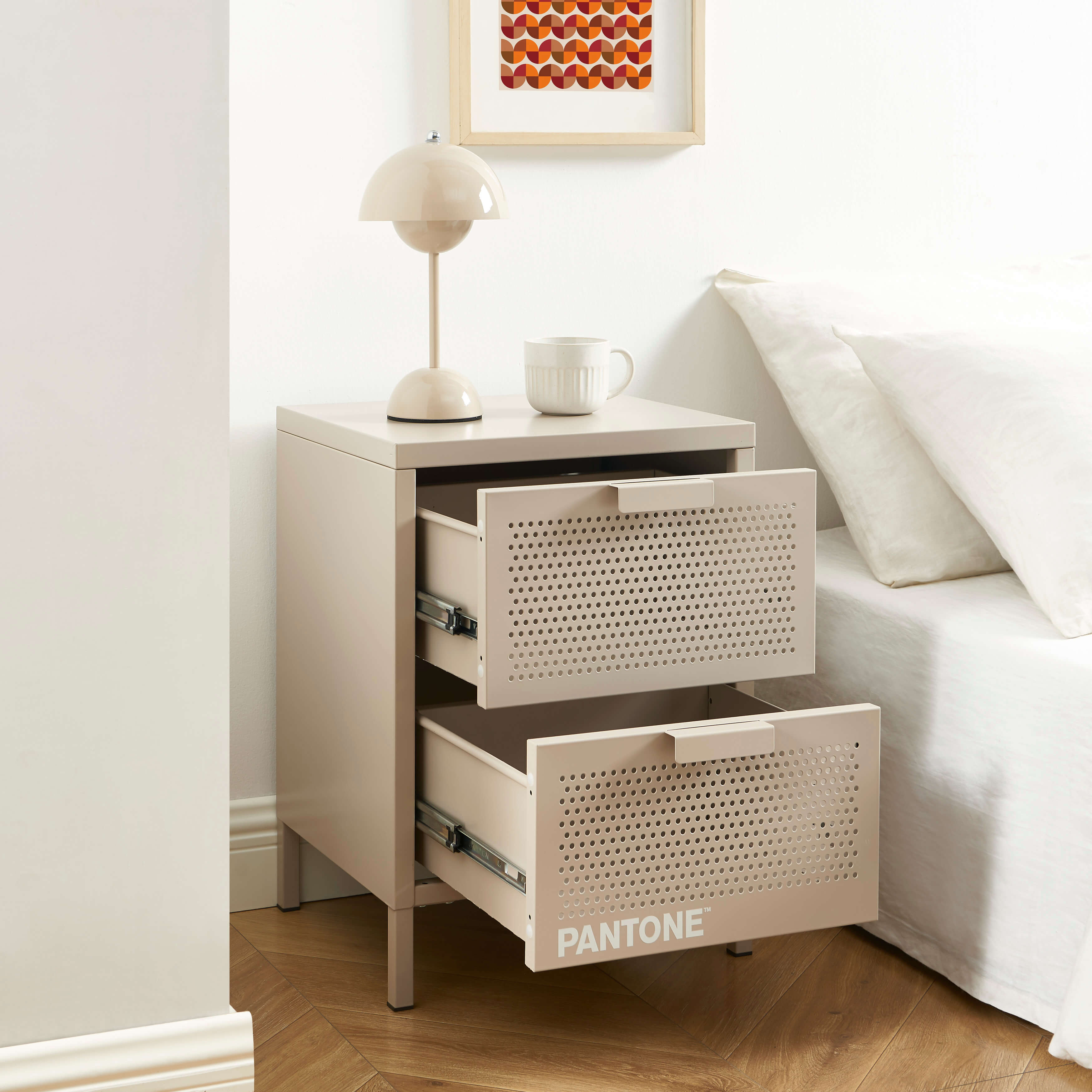 Table de chevet PANTONE métal taupe double tiroirs 40cm