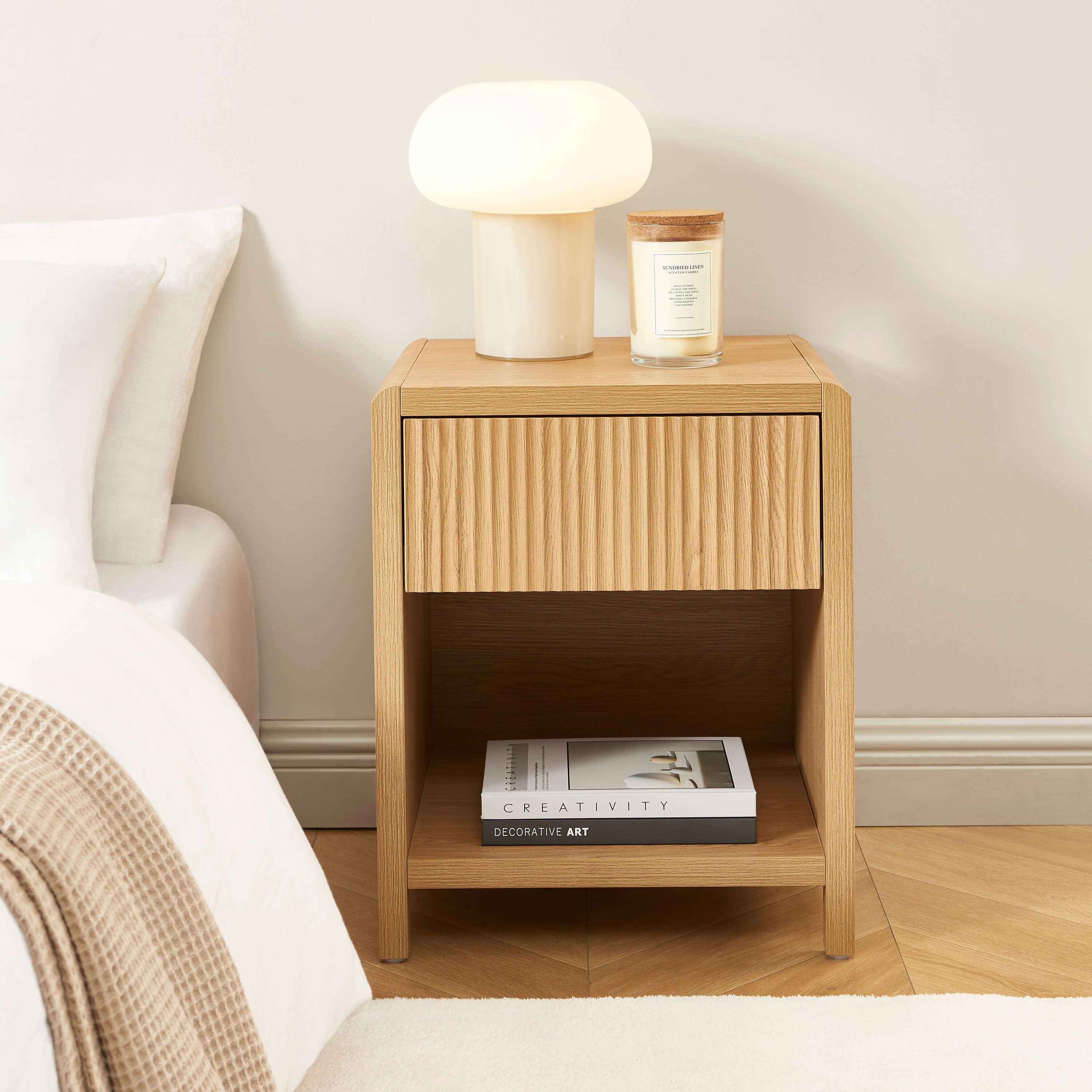 Compacte et bien pensée, la table de chevet UTICA offre une surface idéale pour poser une lampe, un réveil ou vos indispensables du quotidien. Grâce à son format optimisé, elle s'intègre facilement dans les petites comme les grandes chambres sans encombrer l'espace.