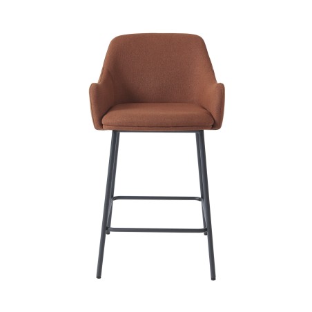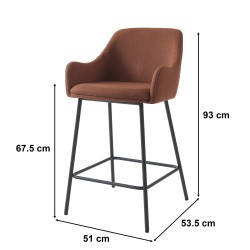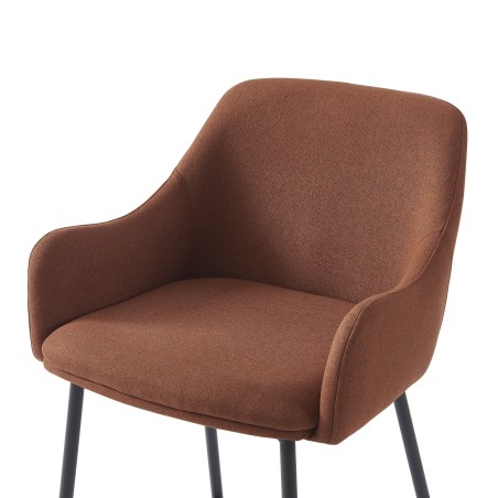 équilibréLot de 2 tabourets de bar NILS en tissu terracotta et pieds en métal noir. Dimensions des tabourets : 51 x 53,5 x 93 cm