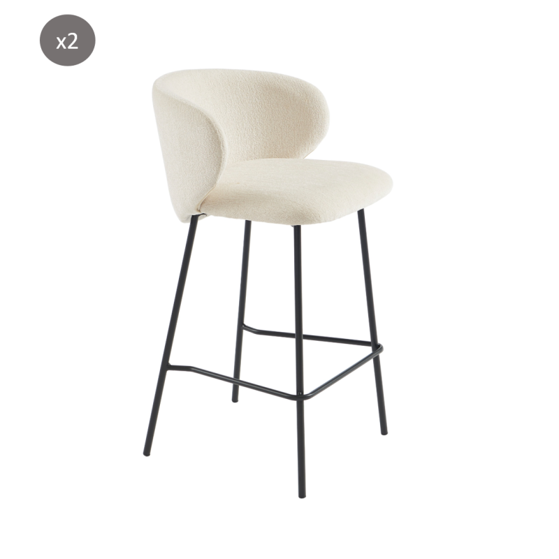 équilibréApportez modernité et chaleur à votre espace avec le lot de 2 tabourets CASSIE. Leur revêtement en tissu chenille écru, doux et tendance, leur donne une allure chic et confortable, tandis que leurs pieds en métal noir ajoutent un aspect contemporain et épuré. Ces tabourets sont le choix idéal pour agrémenter une cuisine américaine, un îlot central ou une table haute.