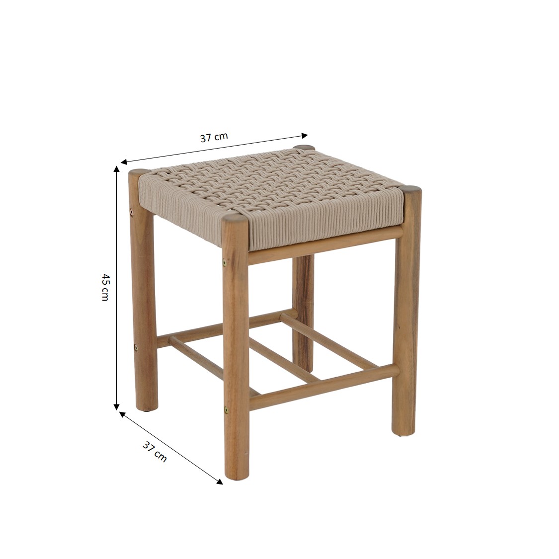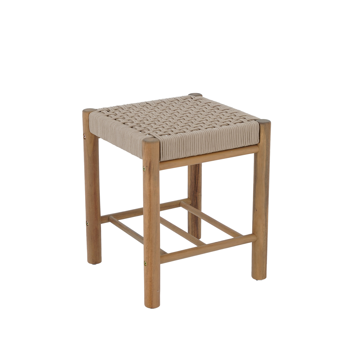 Tabouret intérieur et extérieur AVI en bois d'acacia et corde beige