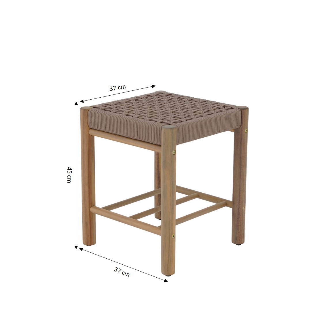 Tabouret intérieur et extérieur AVI en bois d'acacia et corde marron clair