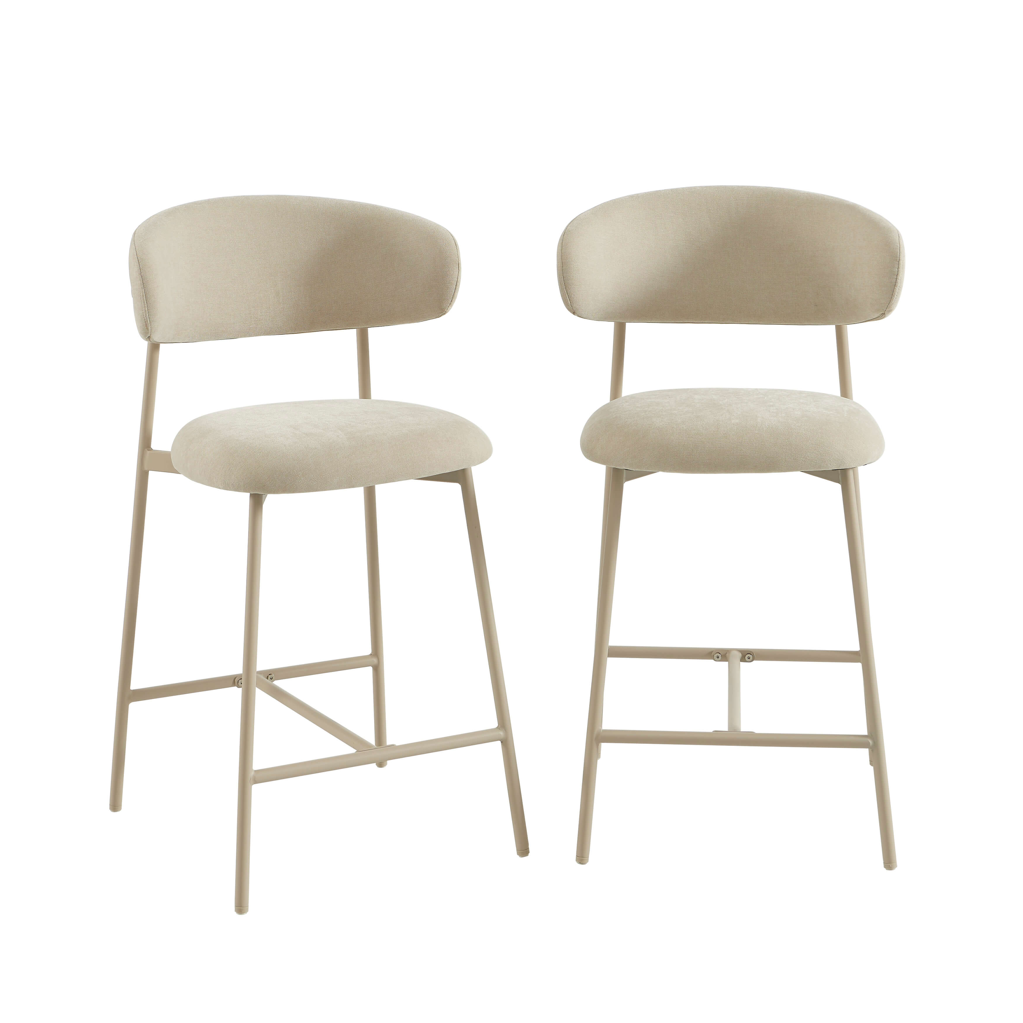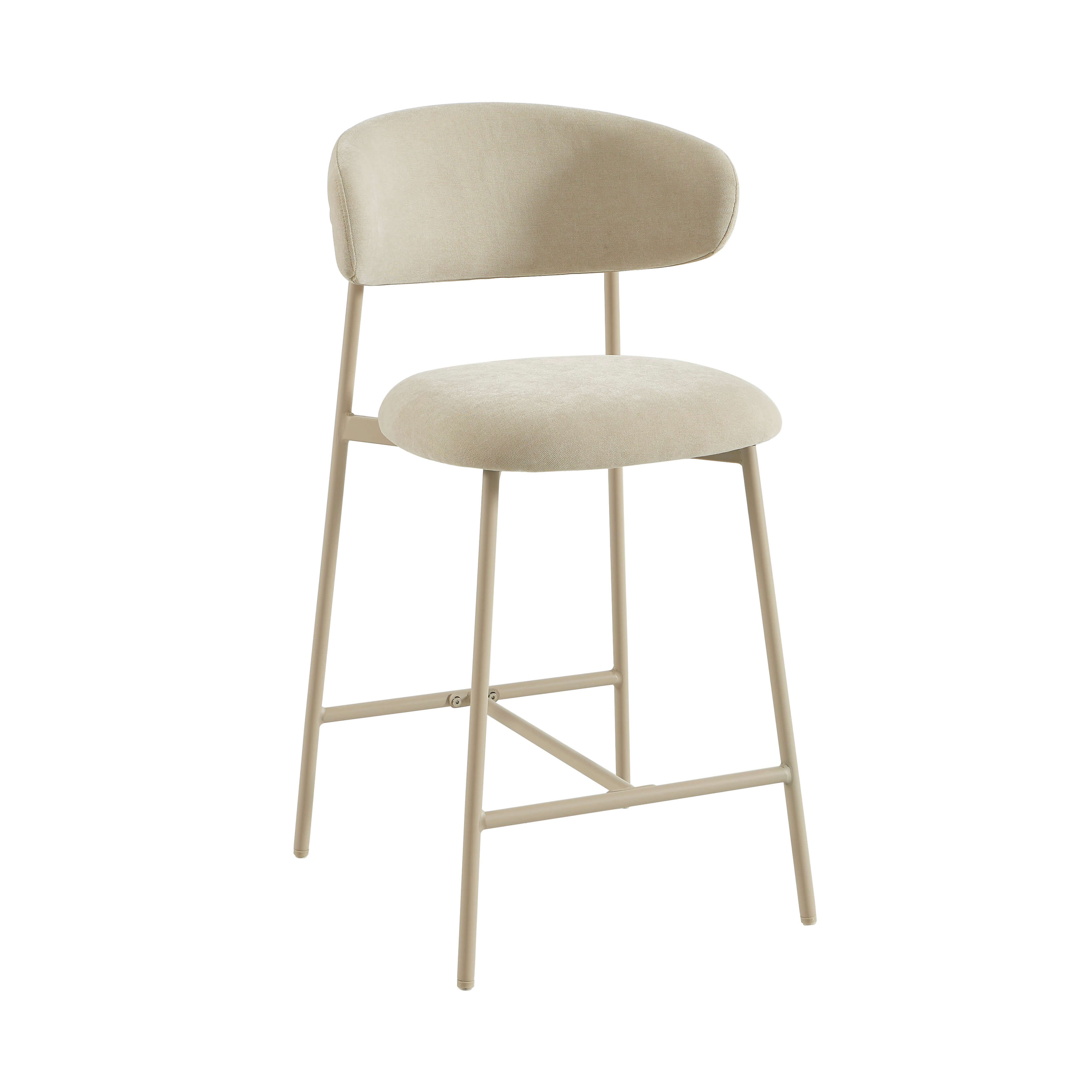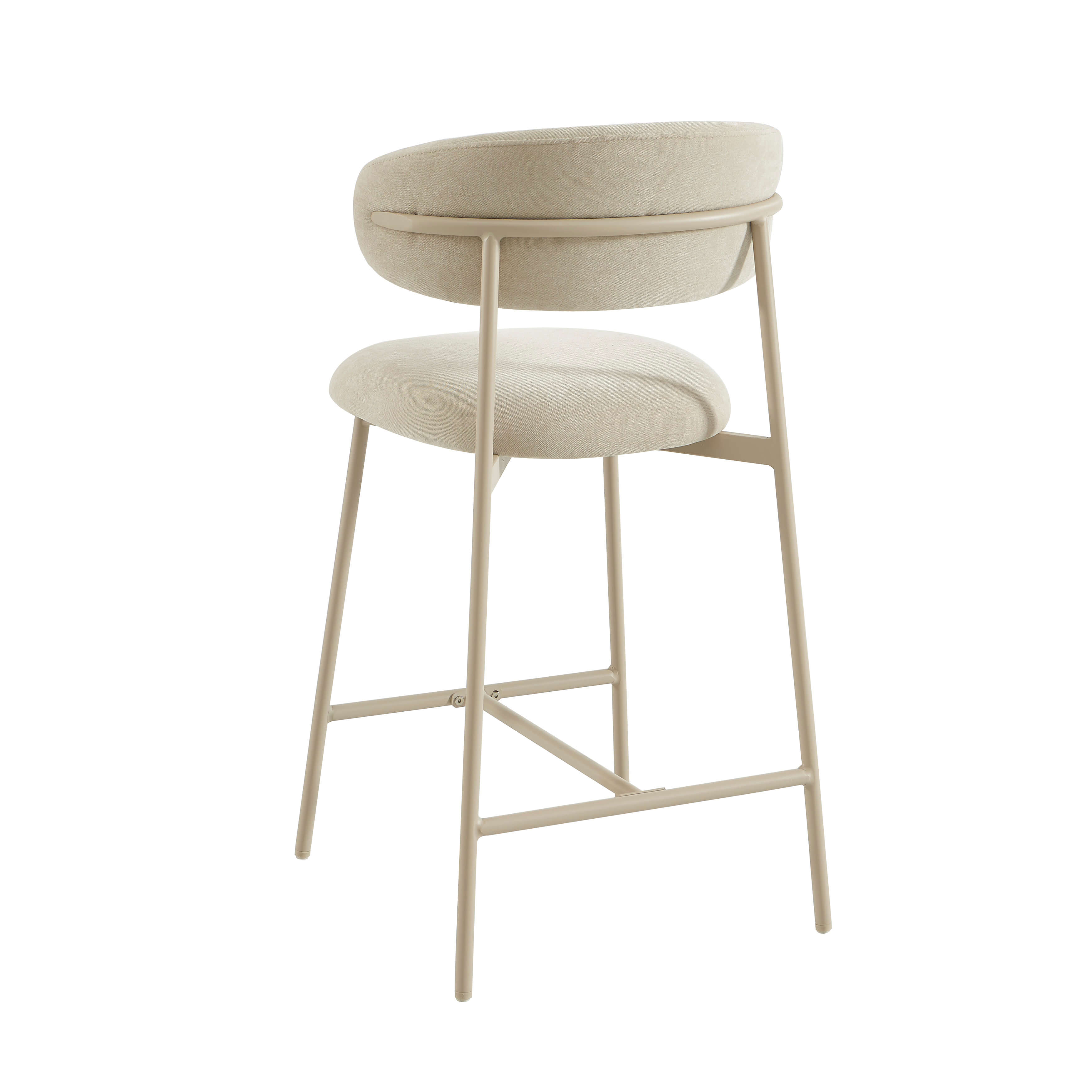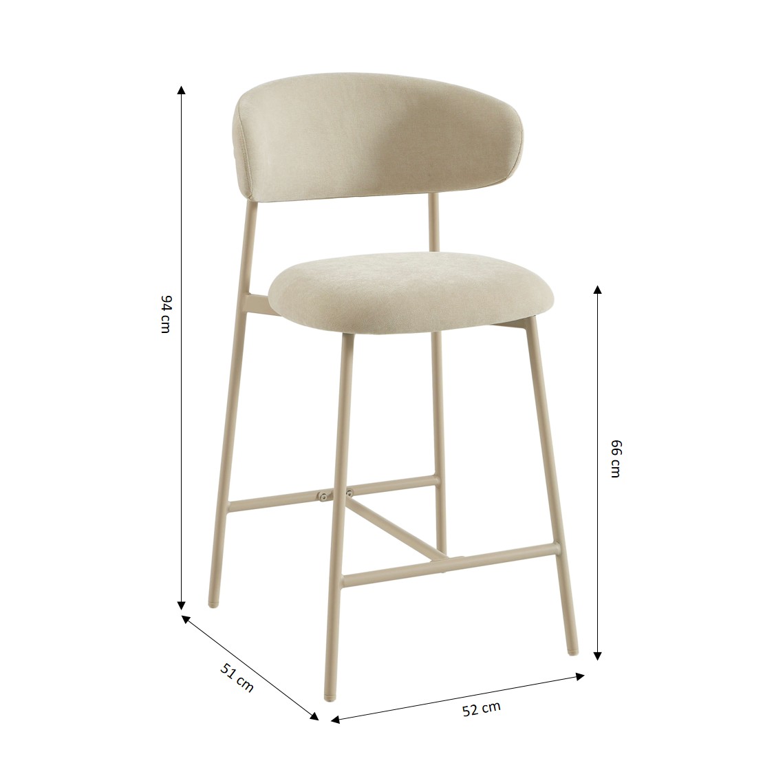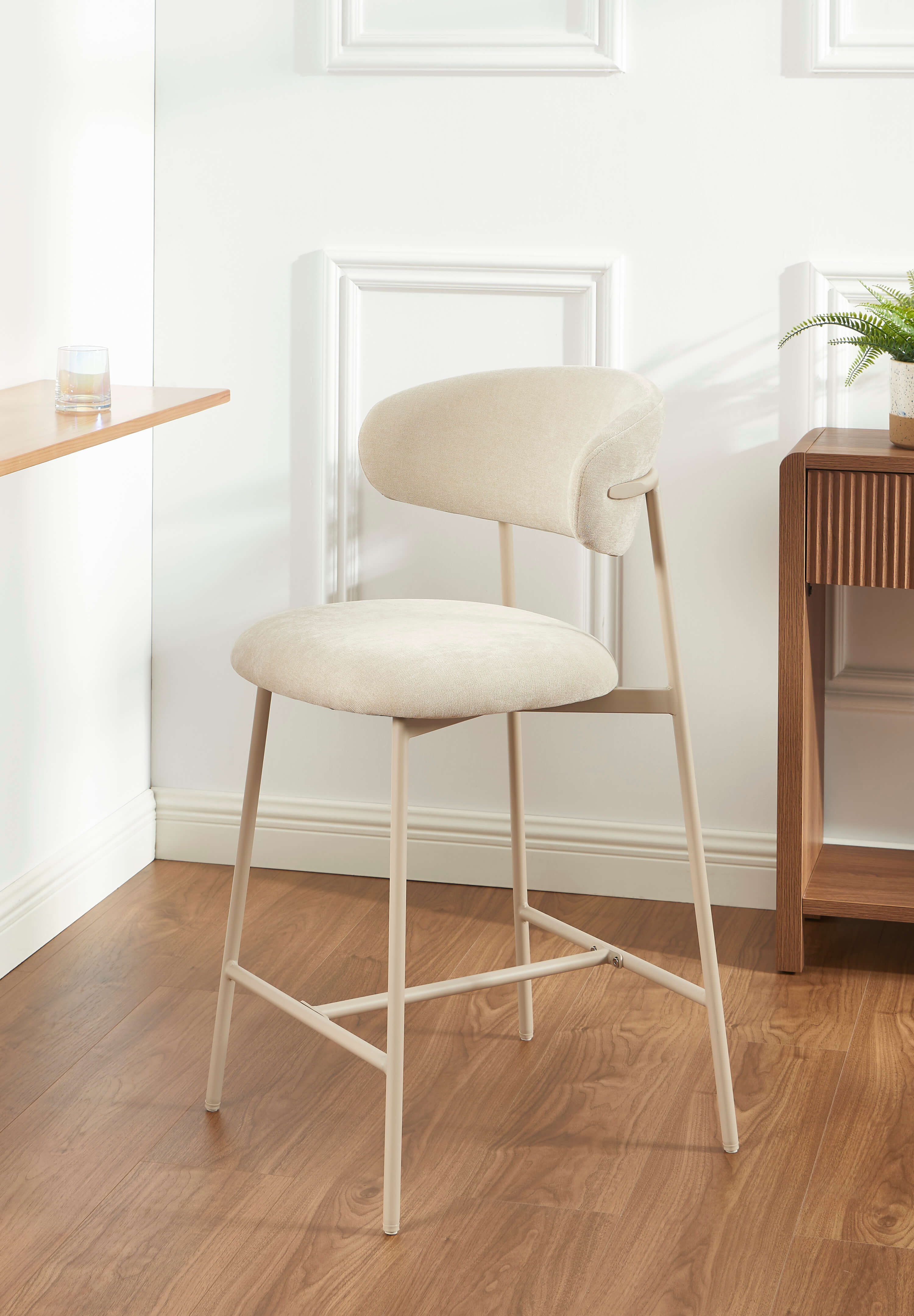 Les tabourets GALLY se distinguent par leurs lignes arrondies et leur tissu élégant. Leur dossier légèrement incurvé offre une allure sophistiquée tout en garantissant un bon maintien du dos. L'association du tissu texturé et du piètement en métal coloré crée un contraste moderne et intemporel, parfait pour sublimer votre cuisine ou votre coin bar.