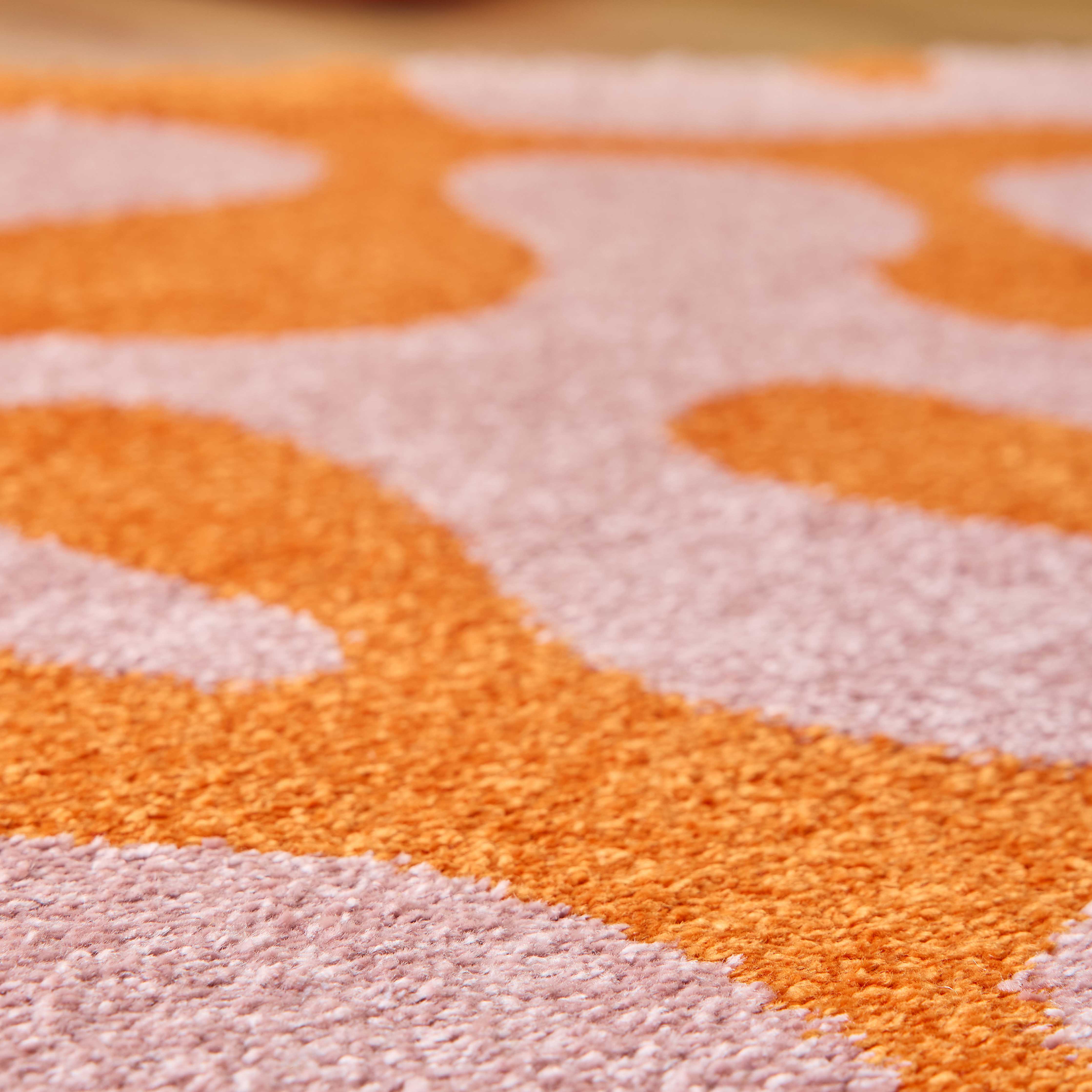 Apportez chaleur et style rétro à votre intérieur avec le tapis ABBY orange au motif vintage, alliant confort et design.